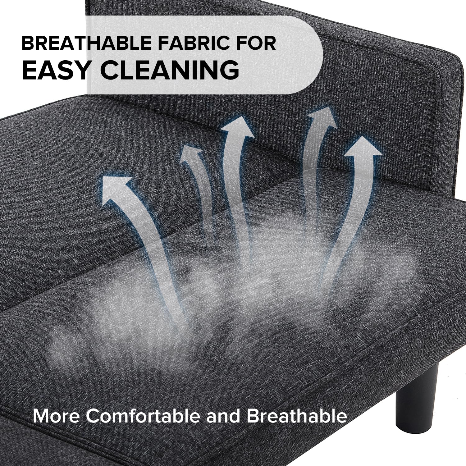 Convertible Sectional Sleeper, Futon Sofa Bed, Splitback Loveseat with Tapered Legs,