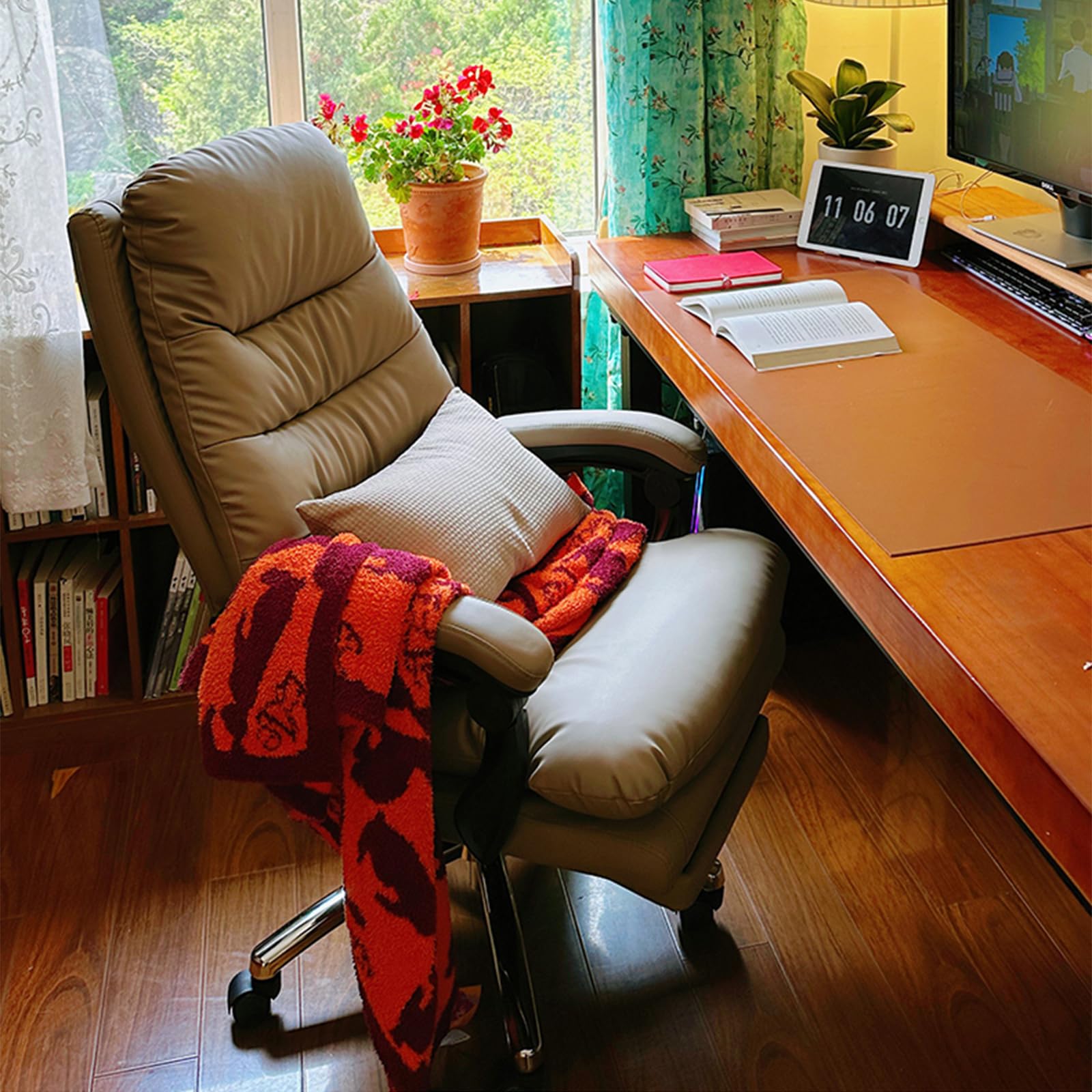 HDHNBA Office Chair Comfortable Computer Desk Chairs High Back Reclining Executive Office Chair PU Leather Adjustable Height Gaming Chair with Wheels, Light Coffee
