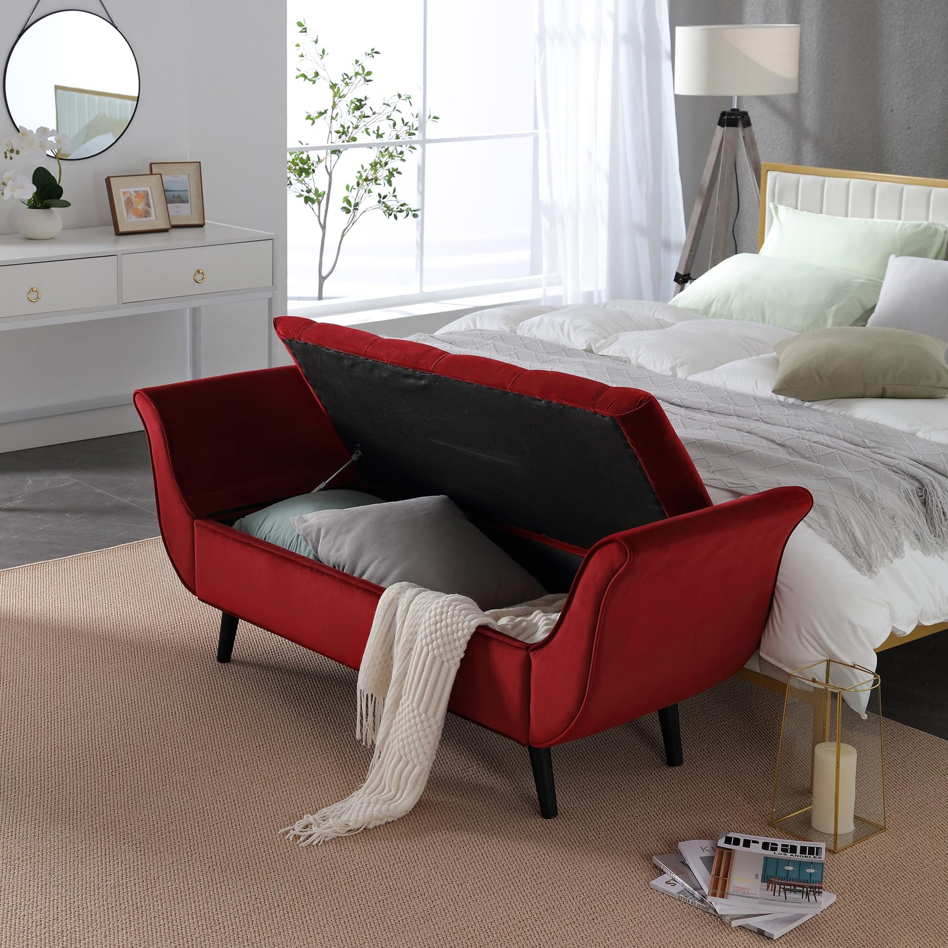 Velvet Storage Bench for Bedroom End of Bed, 65" Upholstered Rolled Armed Button Tufted Stool Bench,