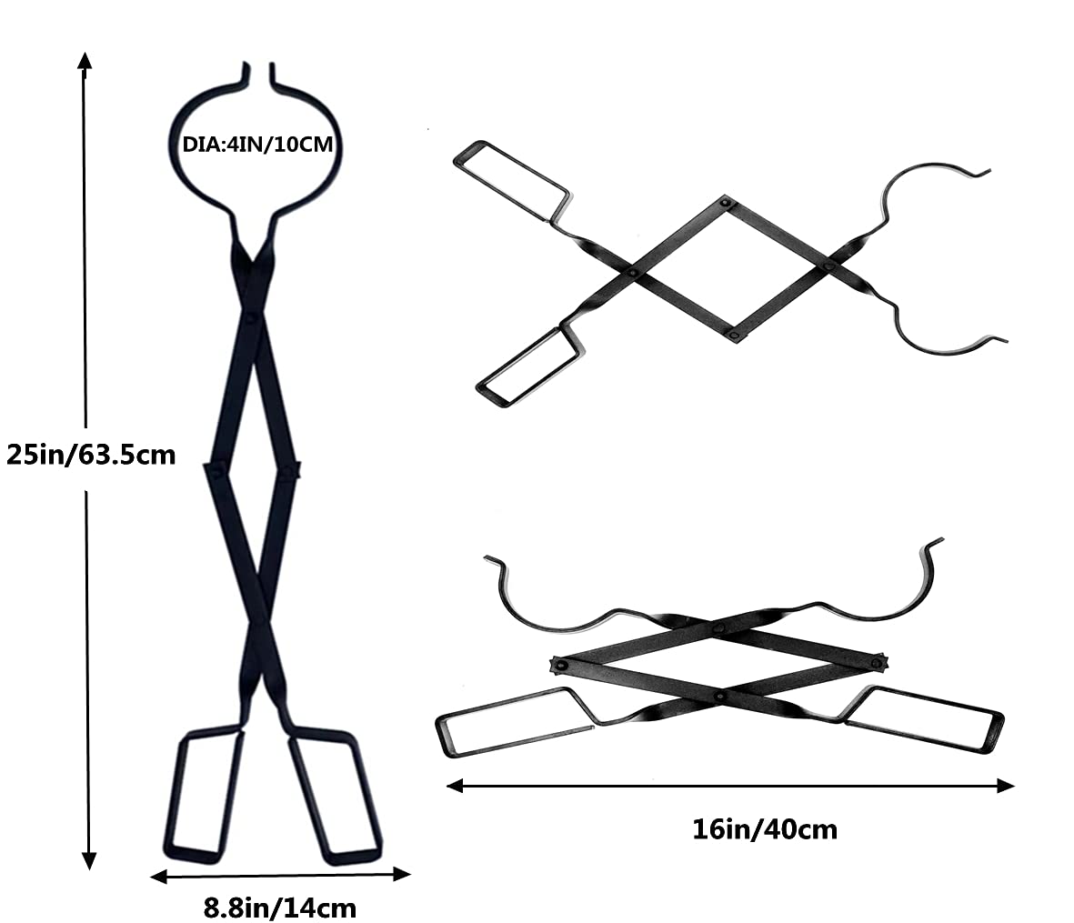 - Fireplace Tongs: Length-25in/63.5cm, weight-1.76lb/0.8kg, the smooth open and close action and strong grabbing force makes it easy to get a strong grip on pieces of wood, even if it’s heavy or an unusual shape. The design of the tip also grips small logs perfectly, keep you away from the heat, so you can get the wood exactly where you need it and keep the fire stoked. Folding design makes it easy to storage when not in use