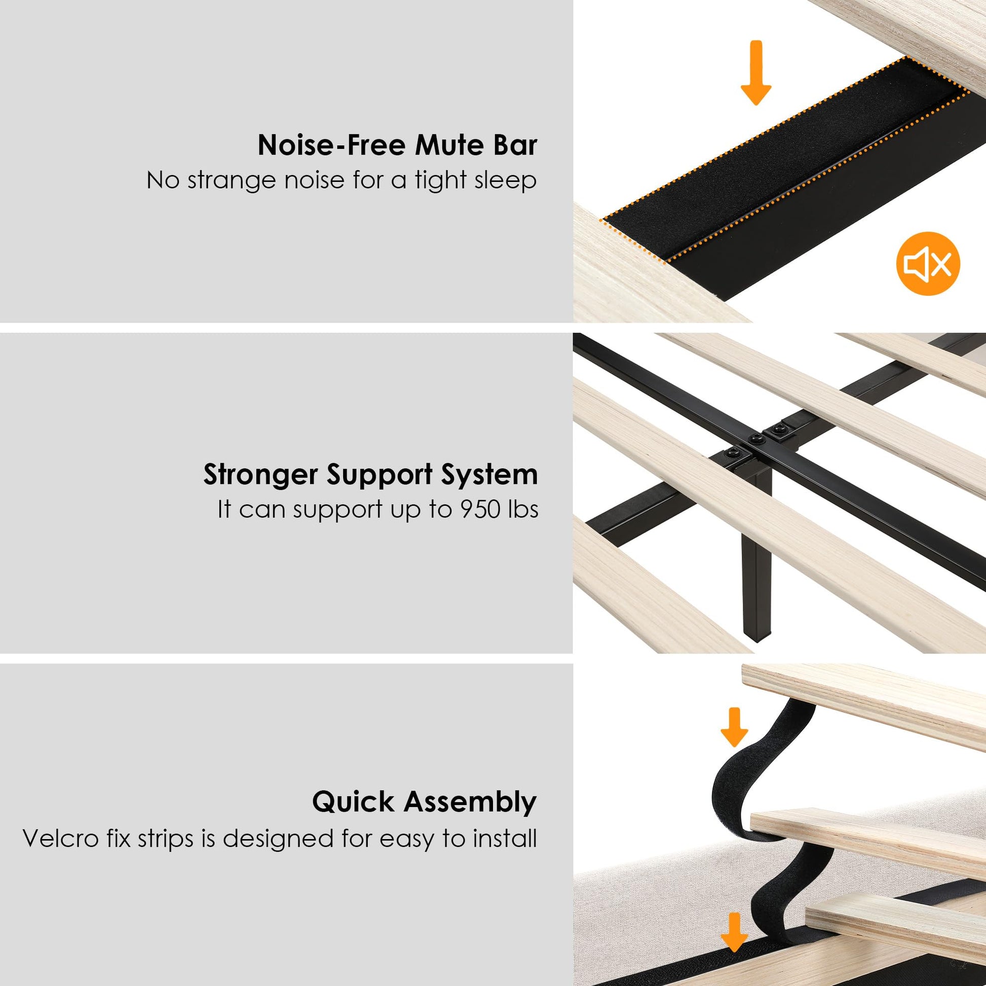 - CUSTOMIZED BED HEIGHT - No Box Spring Needed: Durable wood slats will support your mattress for many years, and you can adjust the height of your bed by choosing whether or not to use a box spring. This upholstered bed frame is suitable for a variety of mattresses, latex, spring, memory foam