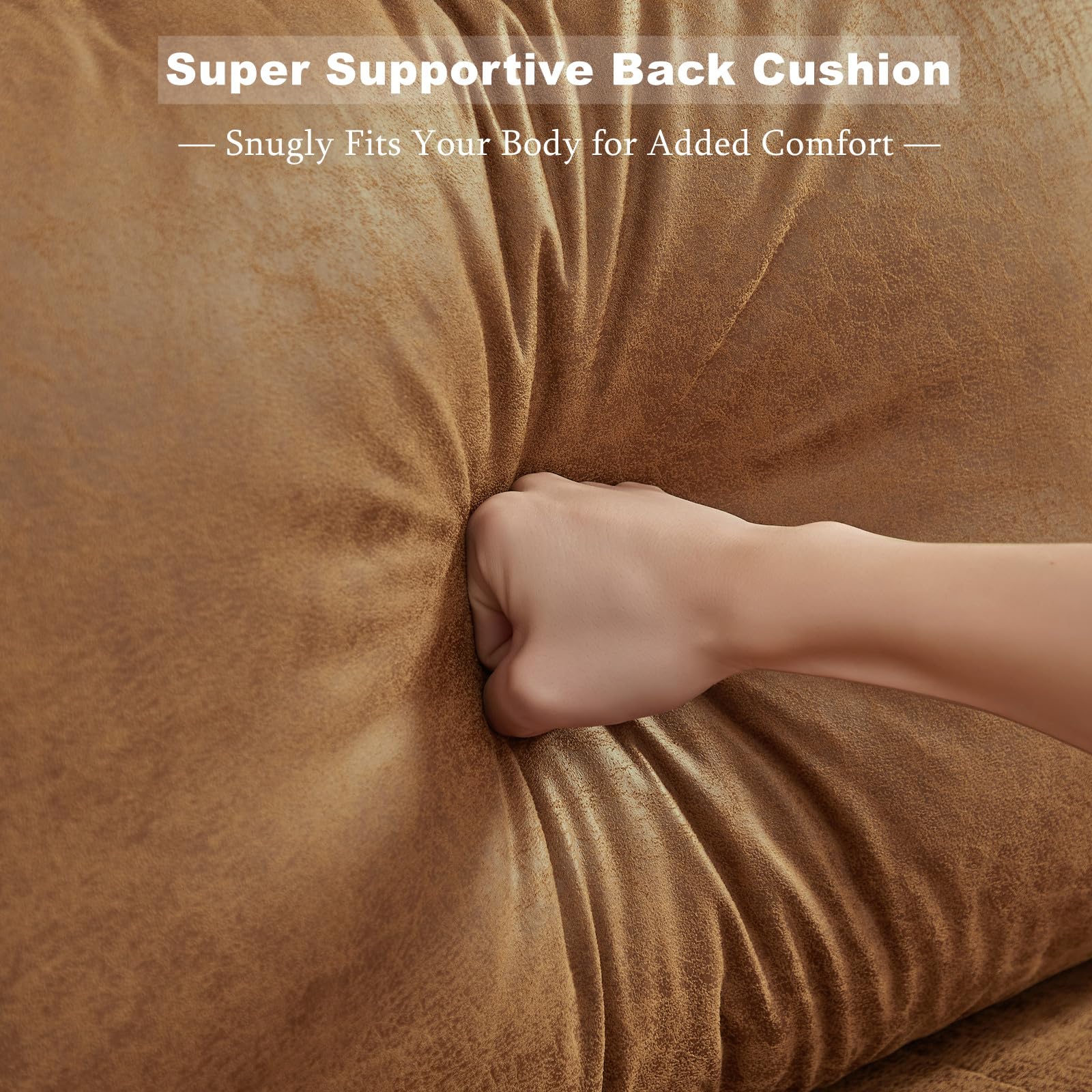 - COMFY & DURABLE: Designed with a 105° ergonomic reclining angle, a cozy, thick back cushion, and a spacious seat (seat depth 20.5") that are filled with high-density foam padding, this sectional couch provides optimal comfort and support to relax and stretch. Plus, With its solid wooden frame and sturdy wooden legs, this loveseat couch can effortlessly support up to 800 pounds, ensuring long-lasting durability and stability.