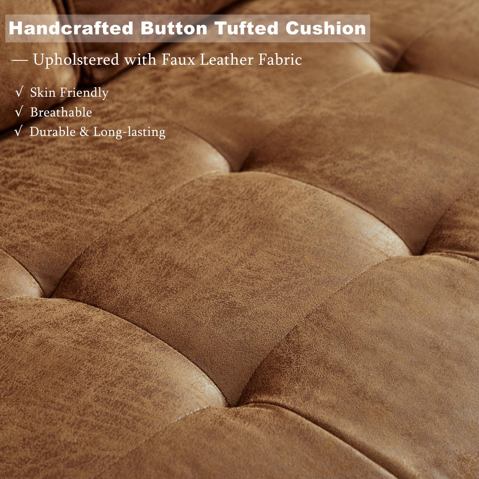 - HANDMADE TUFTED DESIGN: The meticulously handmade button tufting on the love seat cushion of this couch is flawlessly aligned and evenly spaced, enhancing comfort while creating a visually captivating detail that exudes a timeless sense of sophistication and elegance, making this faux leather couch set a focal point in any living space.