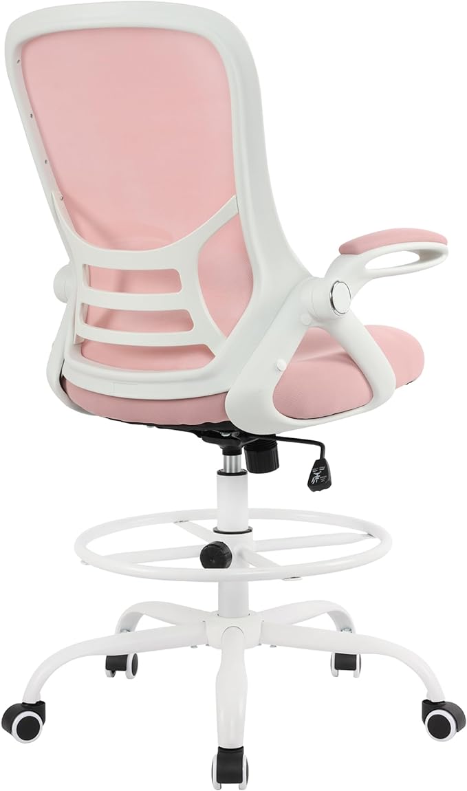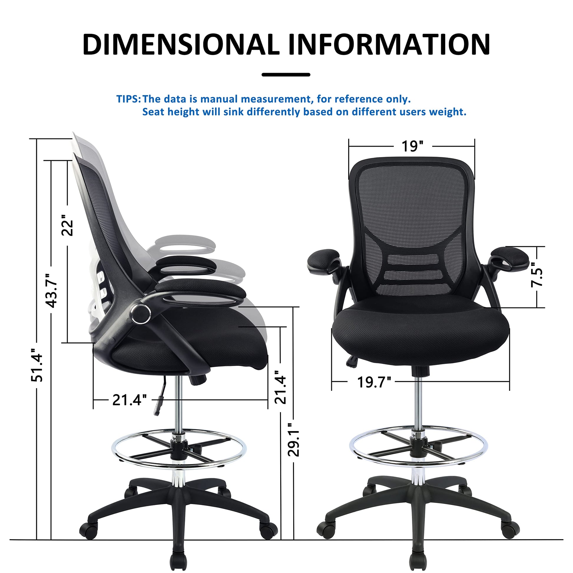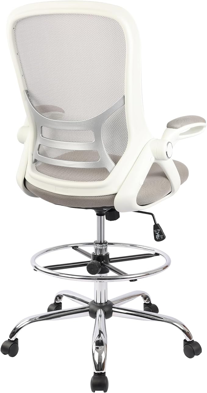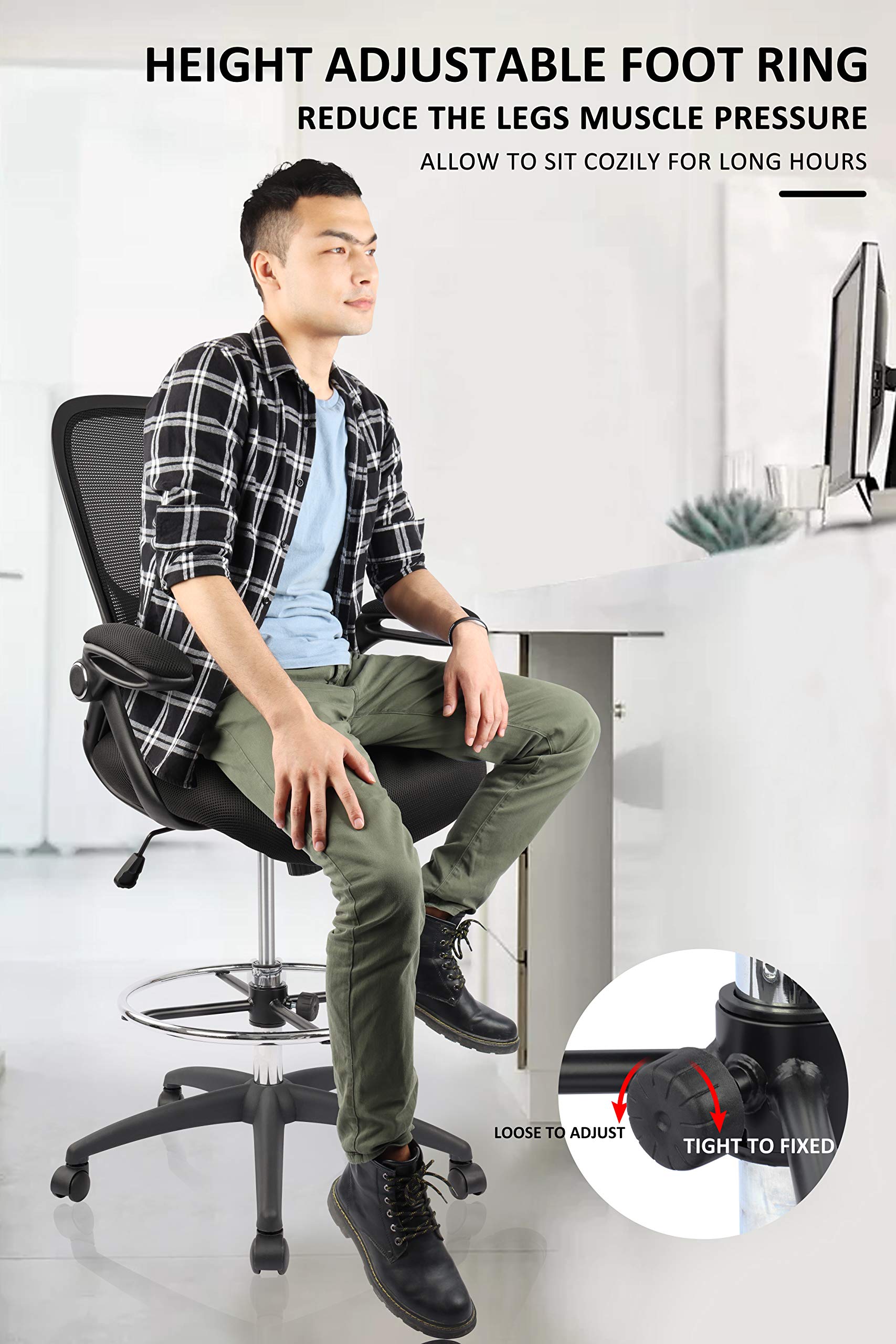 - Flip-up Arms Contoured padded arm pads are easy to get cozy, take pressure off your shoulders and neck; Flip up arms design makes your body closer to the desk, ensuring a good sitting posture. Let this ergonomic, high-back drafting chair bring your workday to new heights