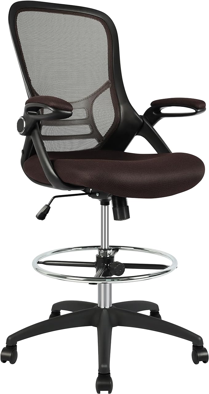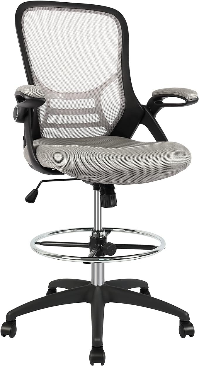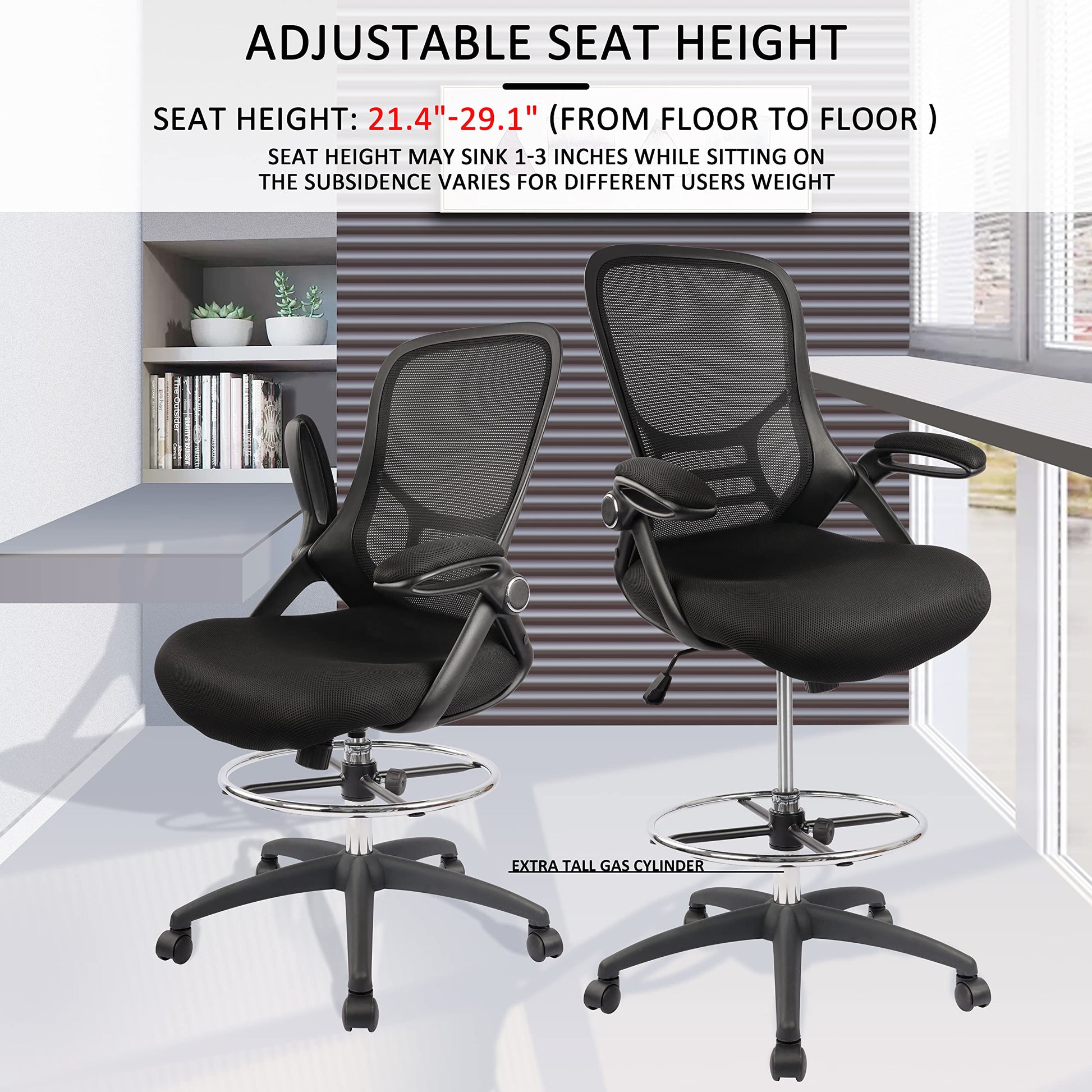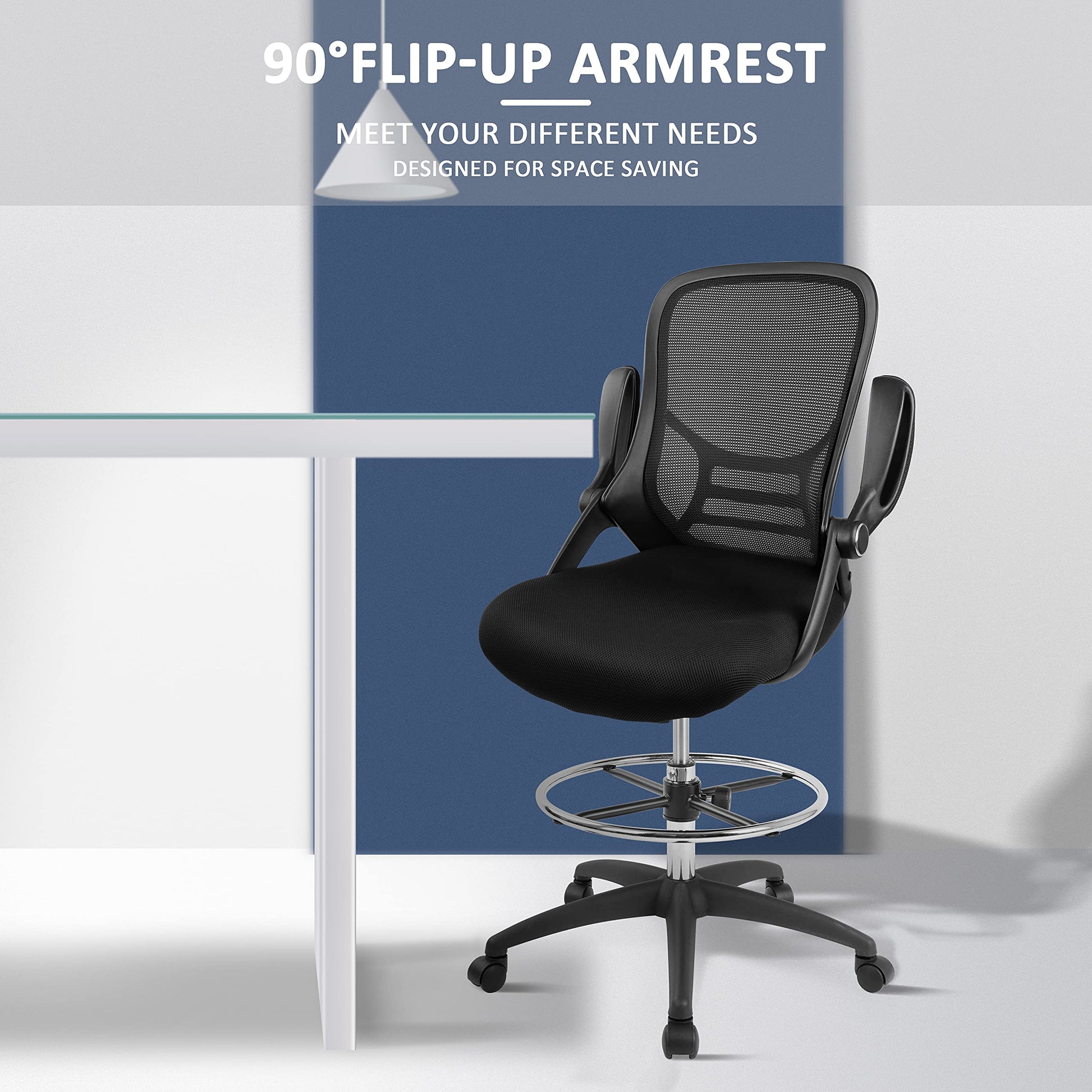 - Flip-up Arms Contoured padded arm pads are easy to get cozy, take pressure off your shoulders and neck; Flip up arms design makes your body closer to the desk, ensuring a good sitting posture. Let this ergonomic, high-back drafting chair bring your workday to new heights