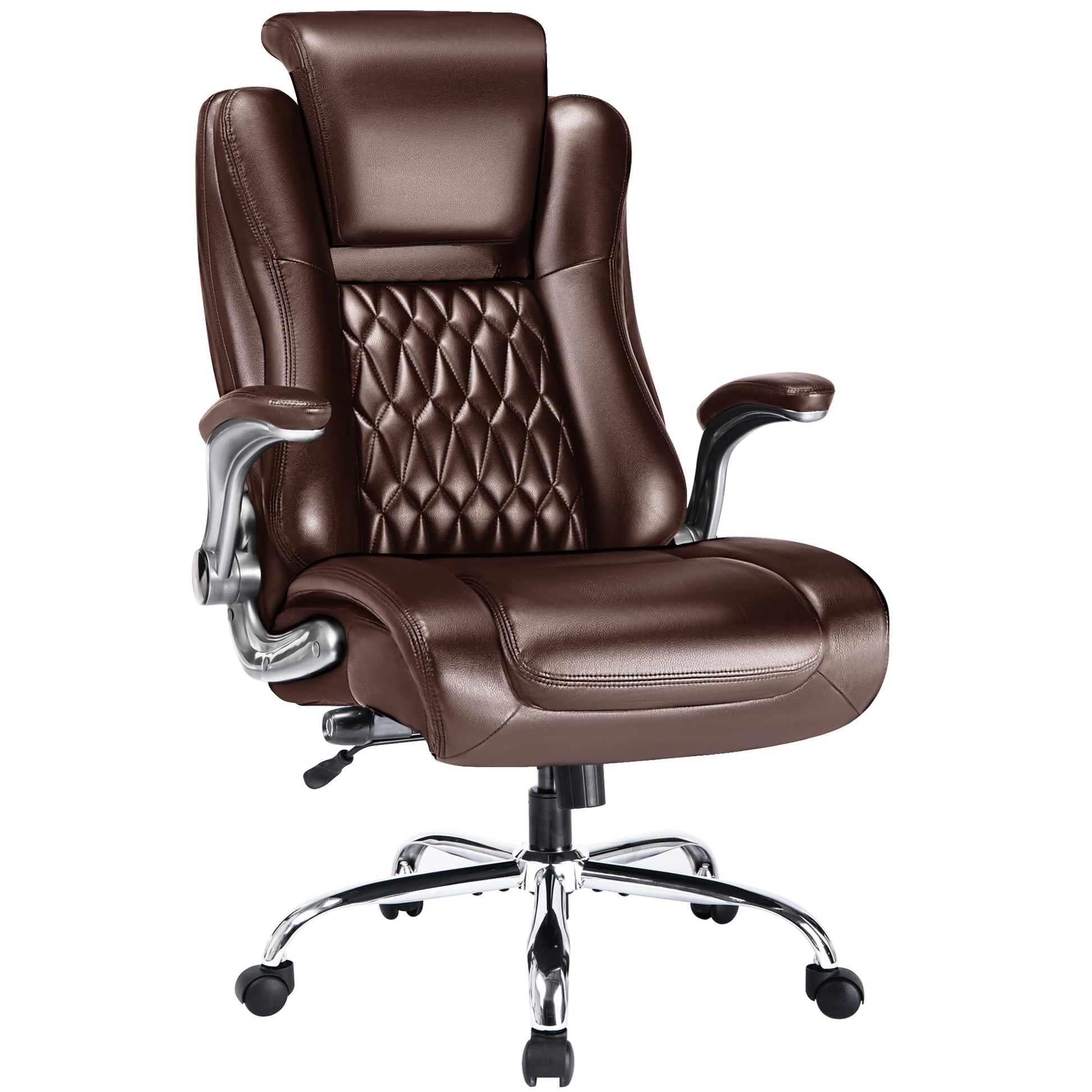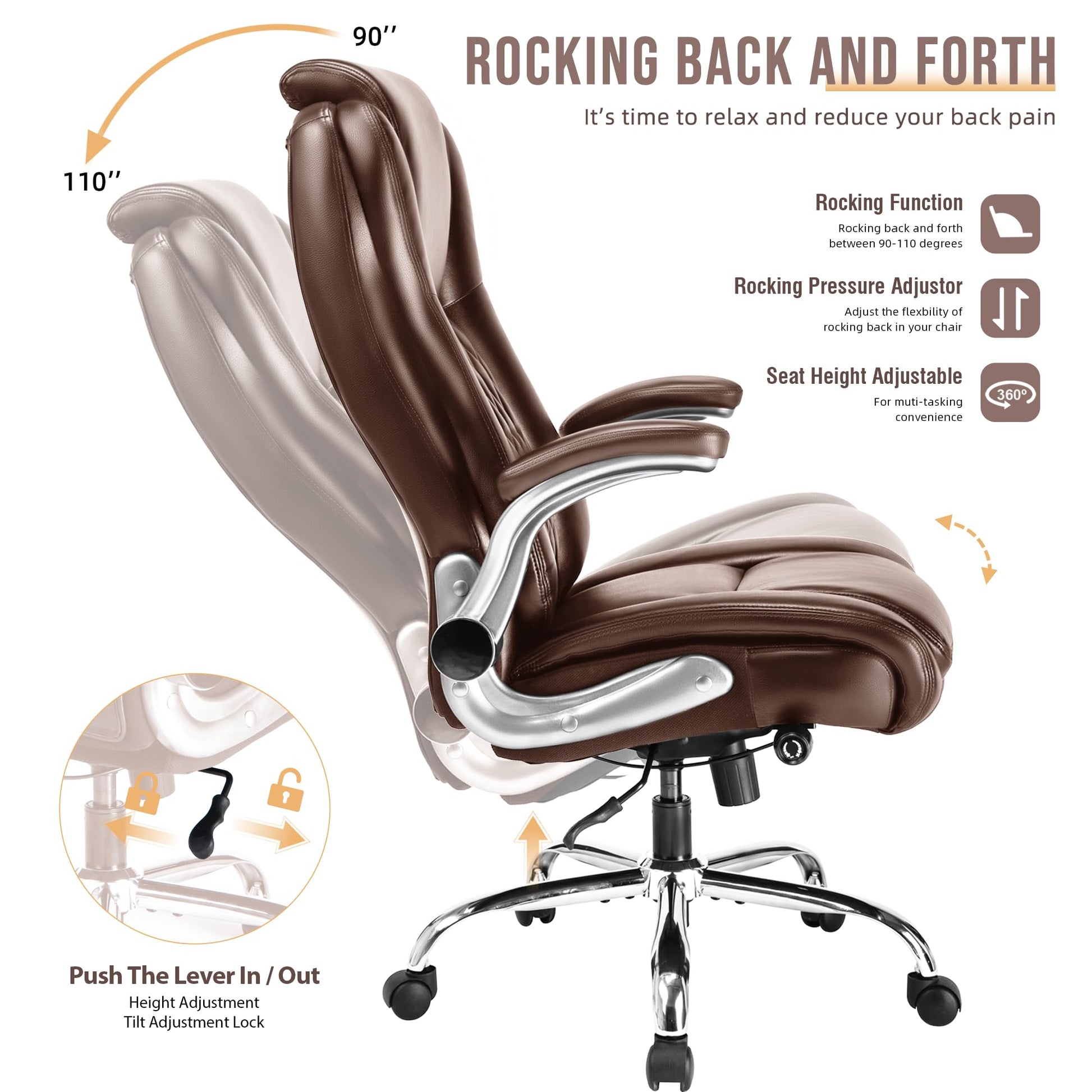 - Comfort for Work, Leisure, and Relaxation Are you in need of an executive office chair for your workspace or a high back office chair that promotes good ergonomics? Our home office chair is the ideal solution. Crafted with soft and breathable PU leather, it effectively prevents sweat and discomfort. It features an adjustable padded elevated headrest for enhanced comfort. The flip-up armrests provide flexibility and freedom of movement when not in use.
