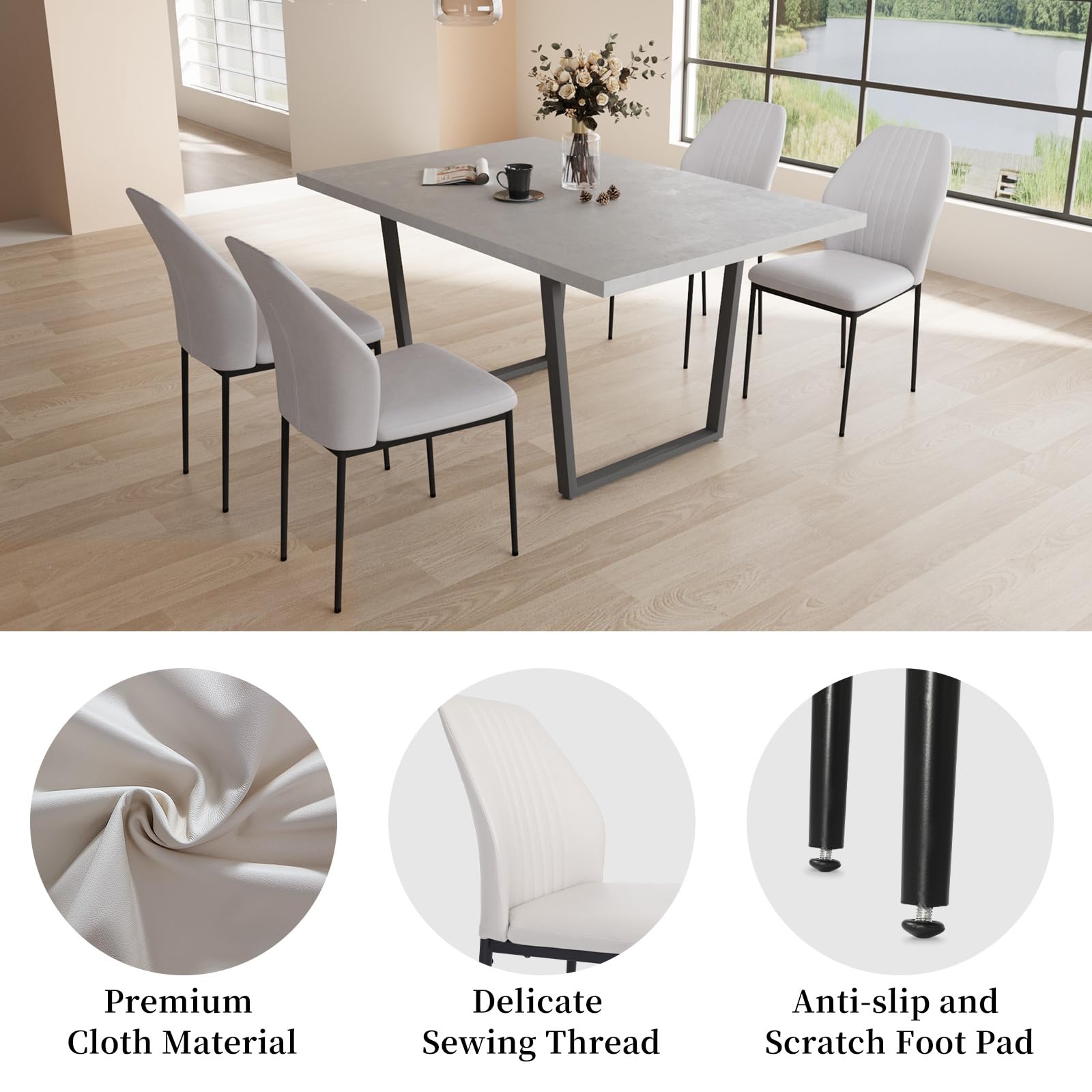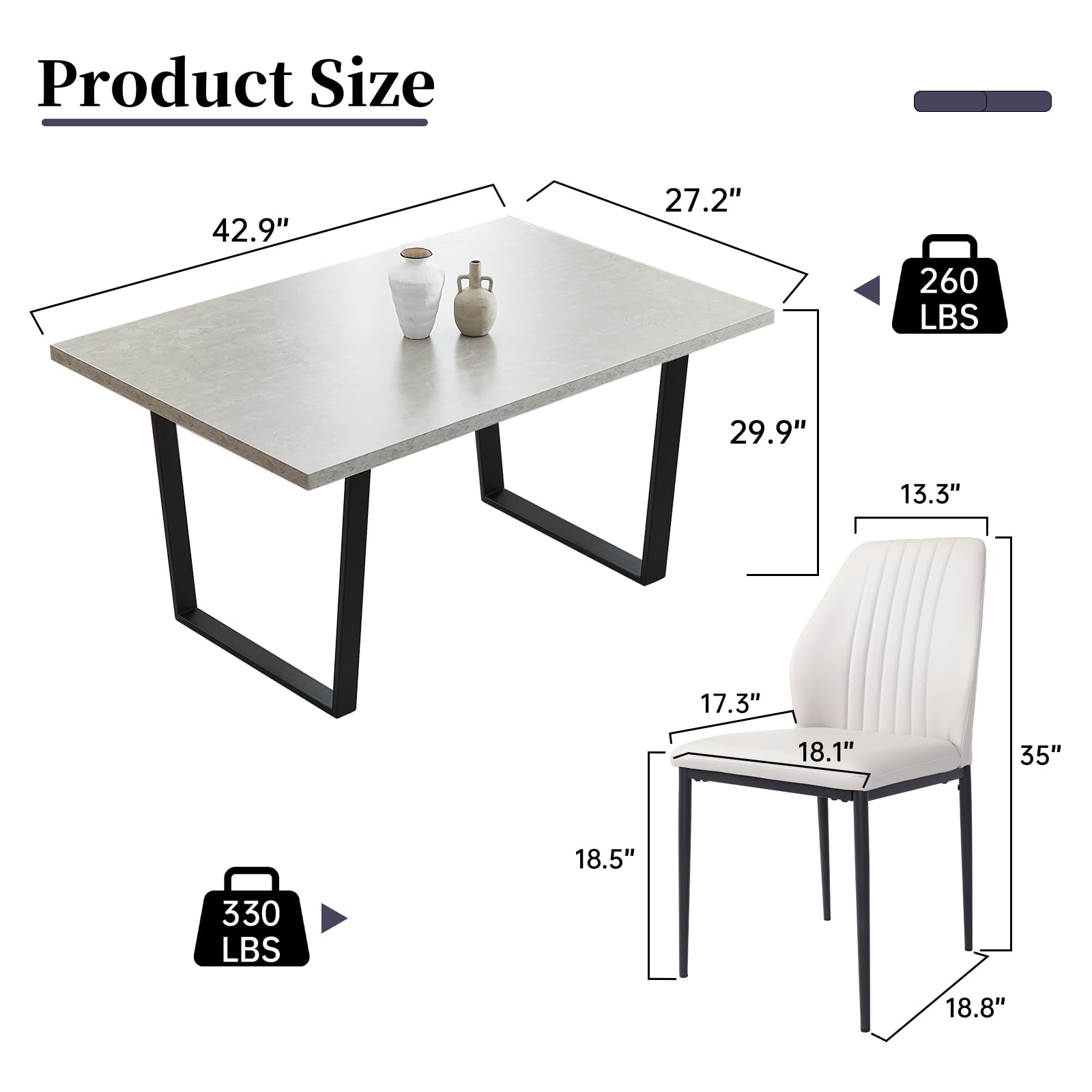 - 5-Piece Design] This dining set includes 1 dining table and 4 white PU leather chairs. Unique light gray table set to match any style of home decor.