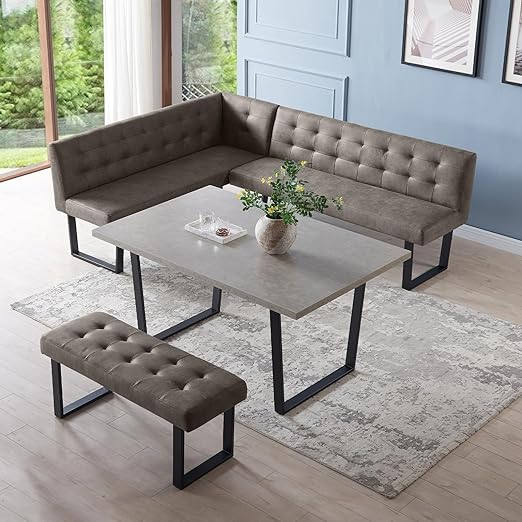 - [Easy to Clean & Assemble] Kitchen dining table set is not only beautiful and strength, but also easy to clean and maintain. You don't need to worry about leaving stains on the tabletop. There are the manual and full set of hardware necessary to guide you through assembly easily.