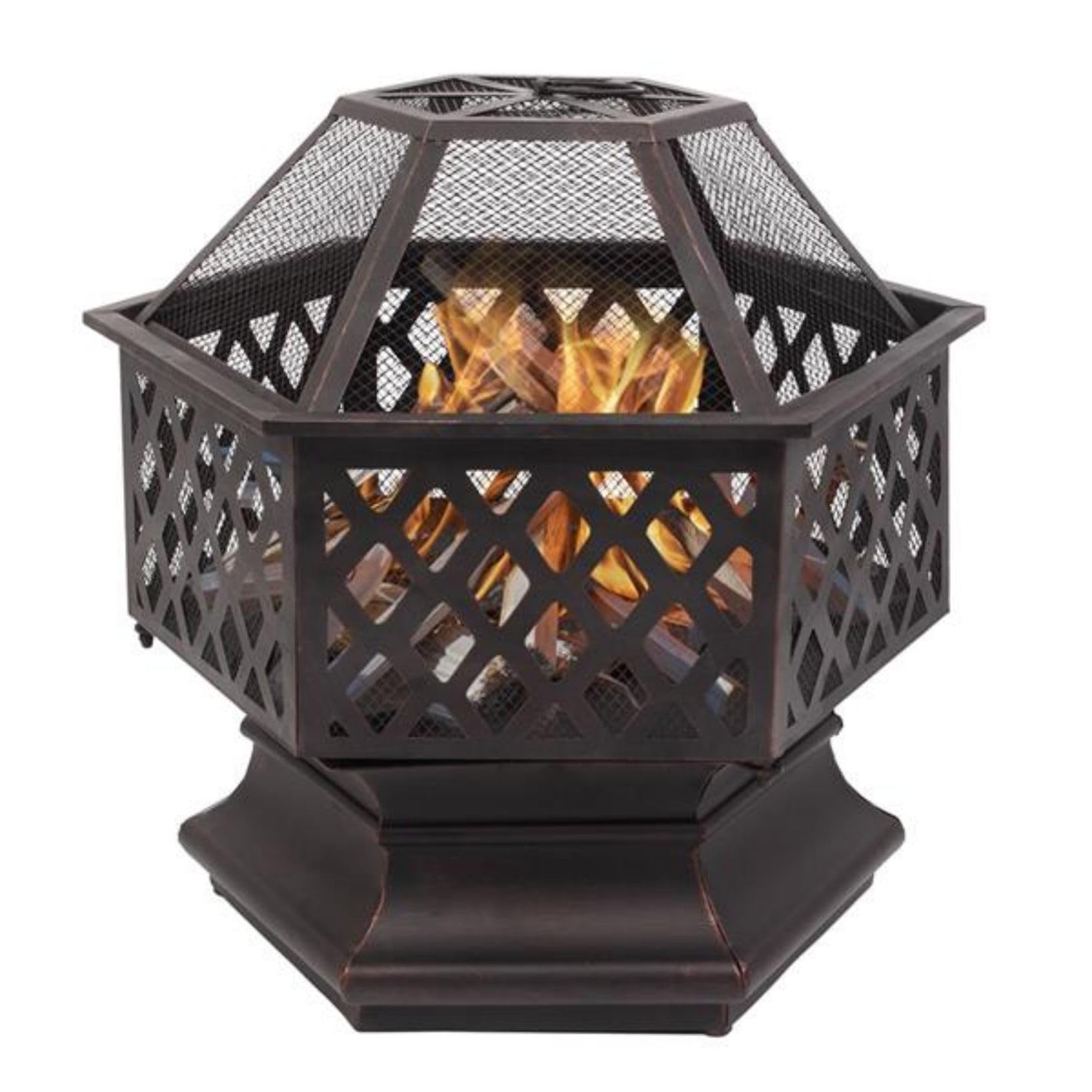 Wood Burning Fire Pits, 22" Hexagonal Shaped Iron Brazier, Wood Burning Fireplace