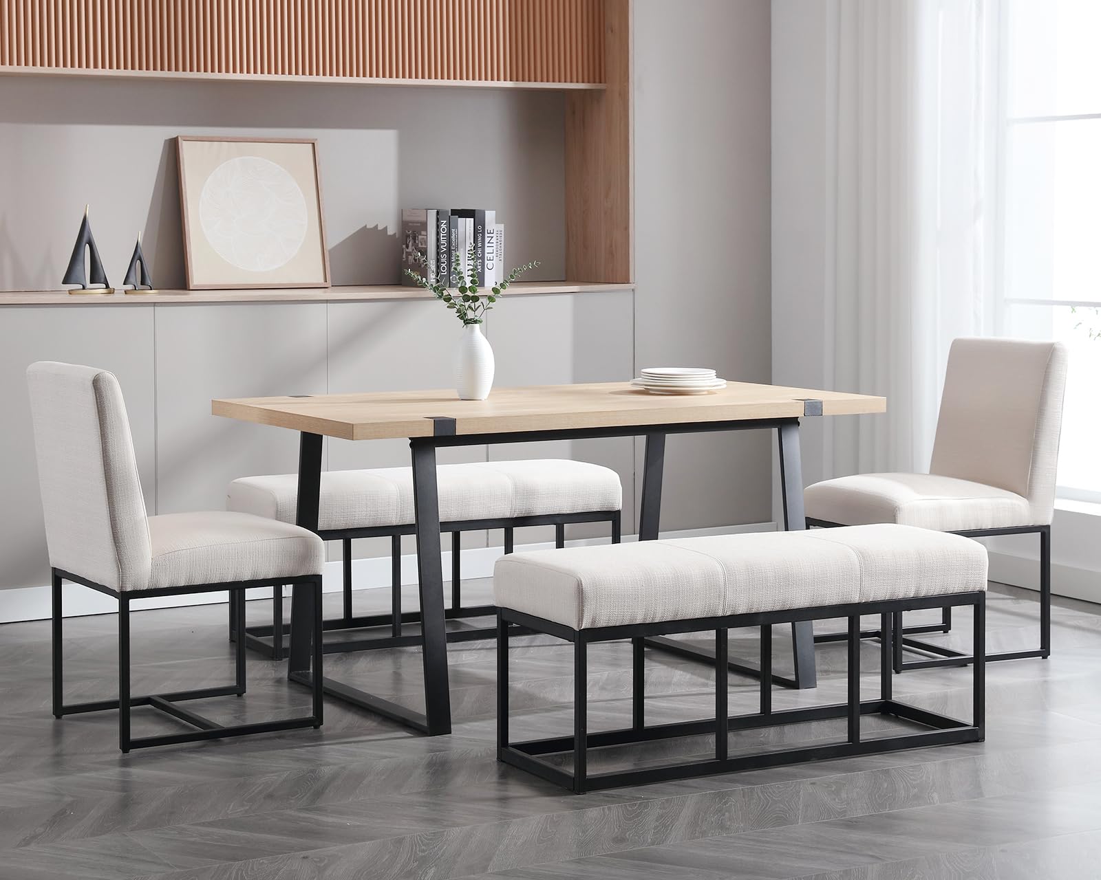 - STABLE CONSTRUCTION: The dining table bench features a modern black-finished metal frame that's easy to clean and provides strong bearing. It is sure to catch your eye without being overly flashy
