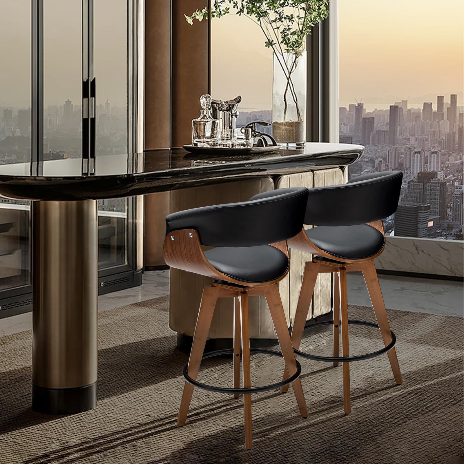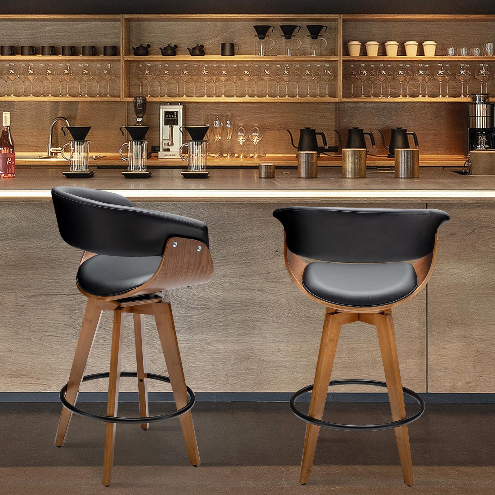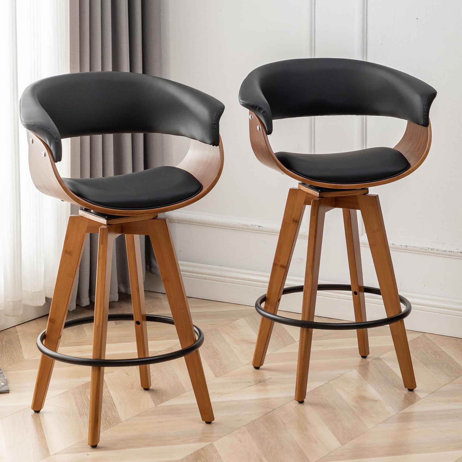 Faux Leather Bar Stools Set of 2,Counter Height Bar Stools,26 Inch Swivel Bar Stools
