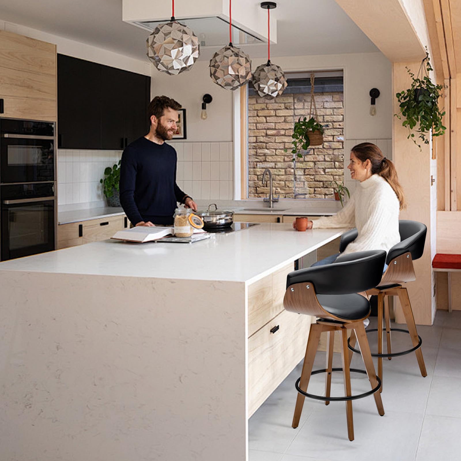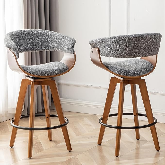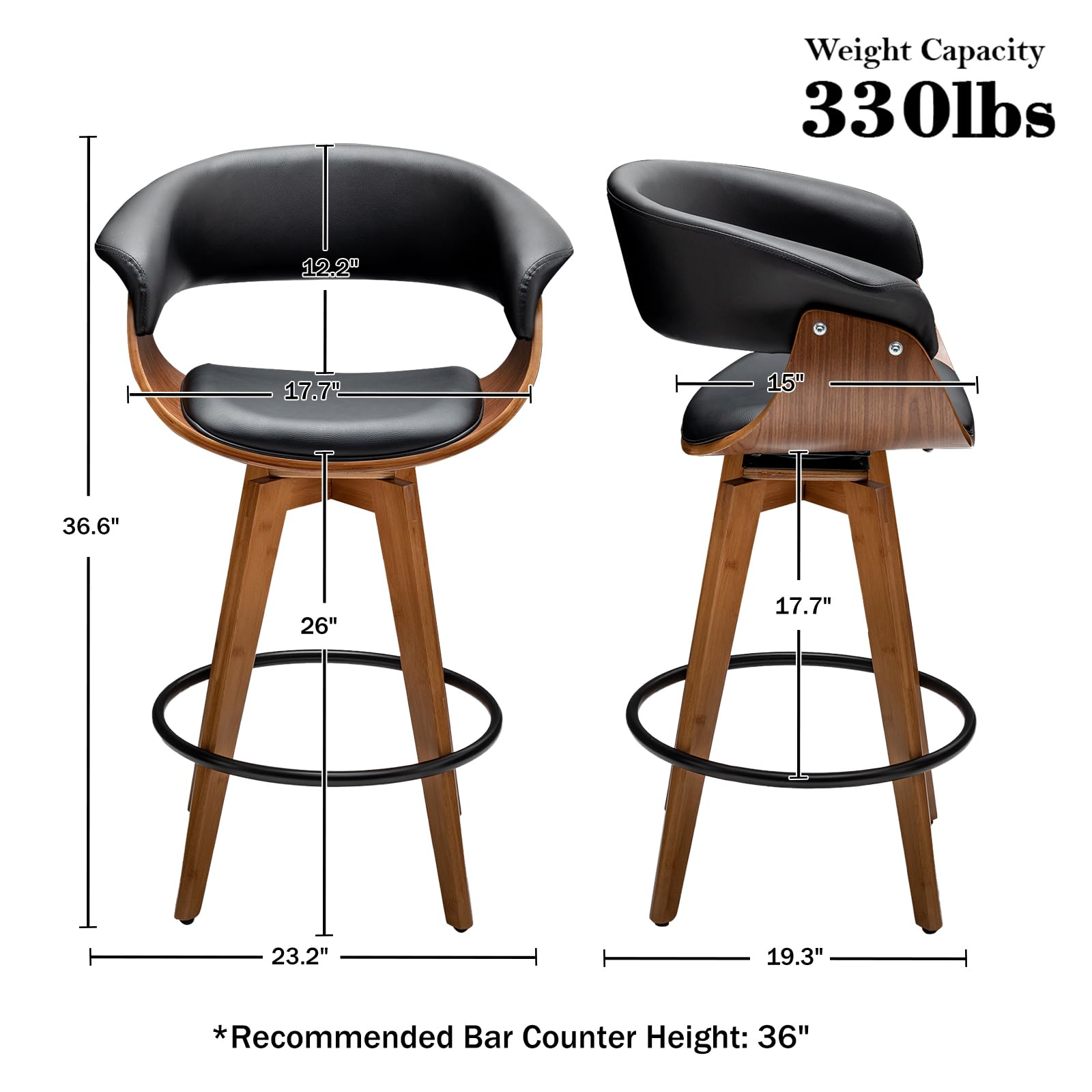 Faux Leather Bar Stools Set of 2,Counter Height Bar Stools,26 Inch Swivel Bar Stools
