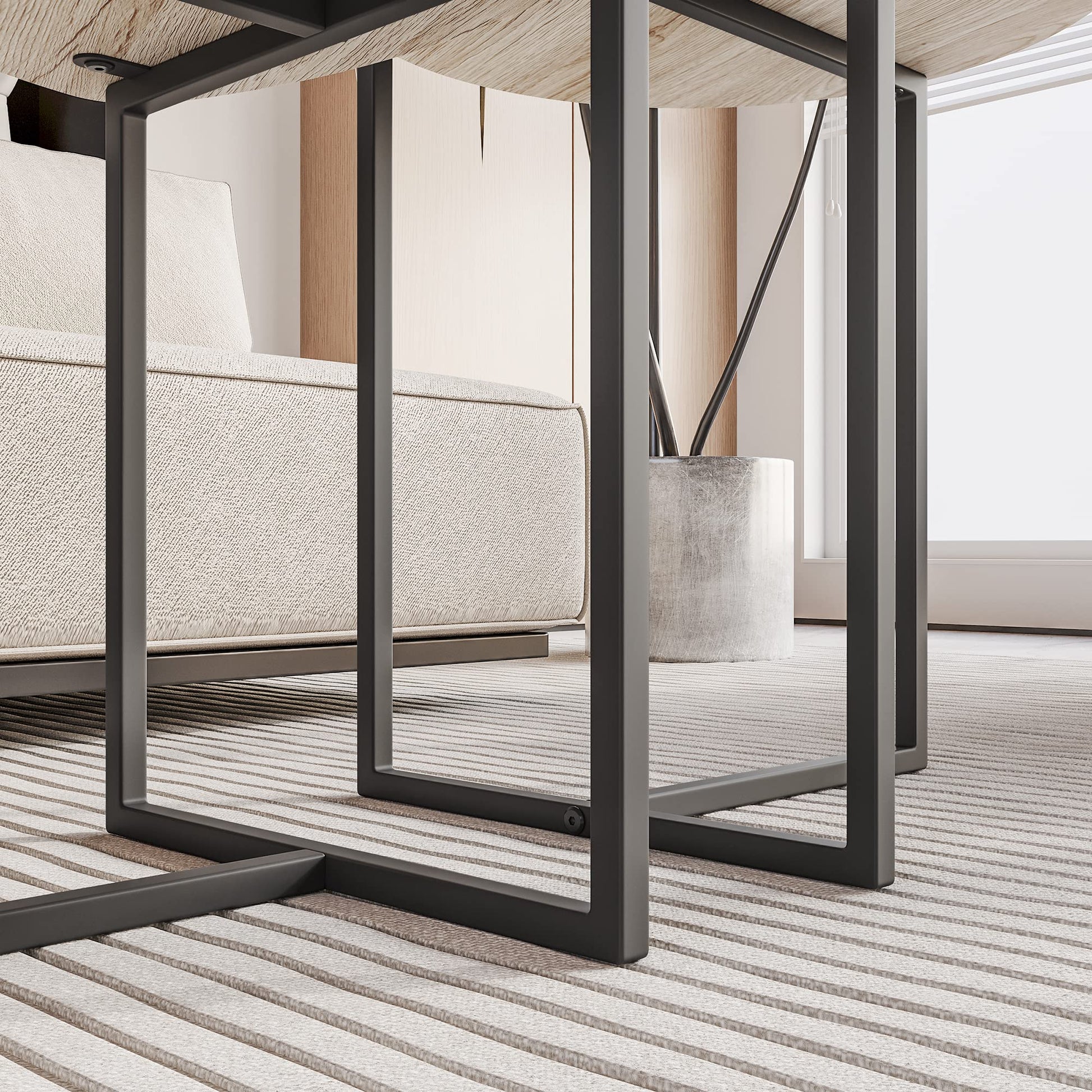 - This living room table comes with elegant and industrial retro style and nesting form design bring a unique experience to your room.The raised circle design gives a fun organized space, the amount of upper counter space on the table are pretty much perfect for all your coffee table placement needs.