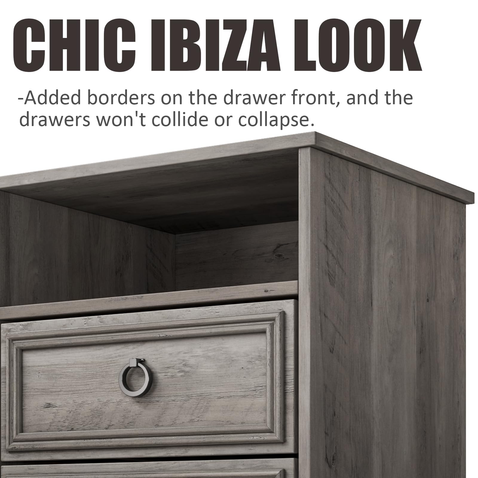 - This chest of drawers is elegant in workmanship, added borders on the drawer front, combined with the classic wood grain, adds a modern feel with a suitably vintage flavor.