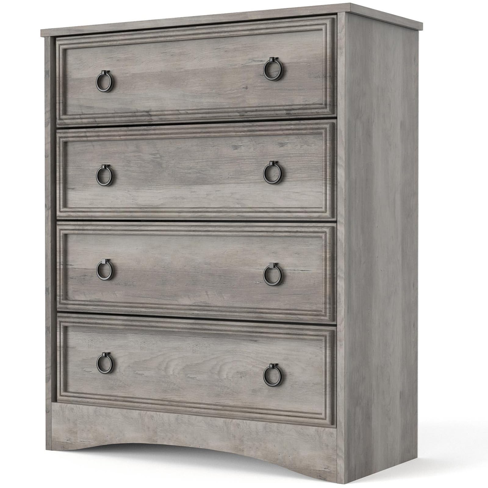 - Farmhouse 4 Drawer Dressers: The surface of the farmhouse wood dresser is irregular wood grain, and the drawer is convex and rectangular. The black pull ring not only adds to the aesthetic, but also makes it easier to push and pull