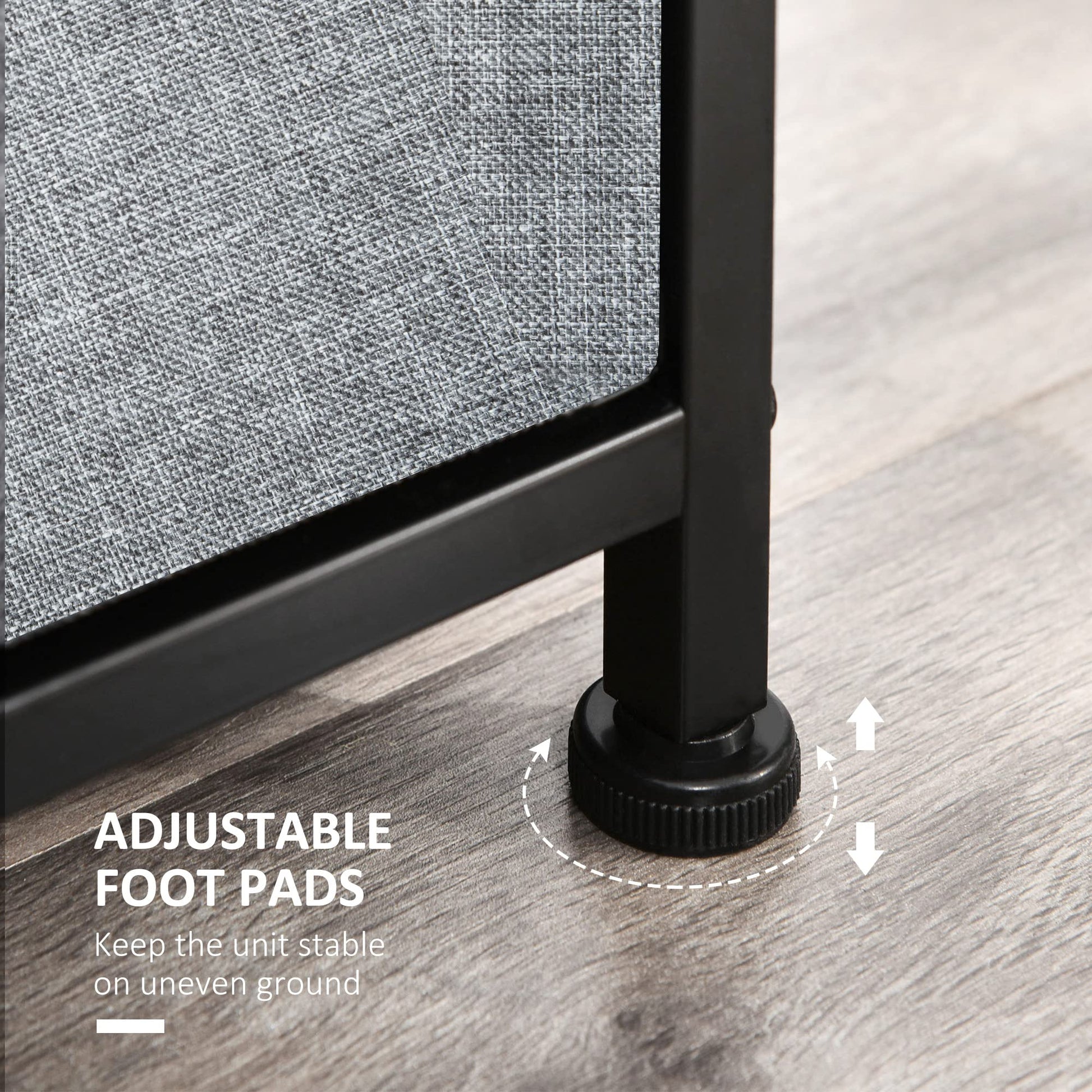 - Anti-Toppling Design Includes an anti-toppling device on the back to create extra stability and to provide added safety. Adjust the height on uneven floors with the anti-scratch foot pads on the bottom.