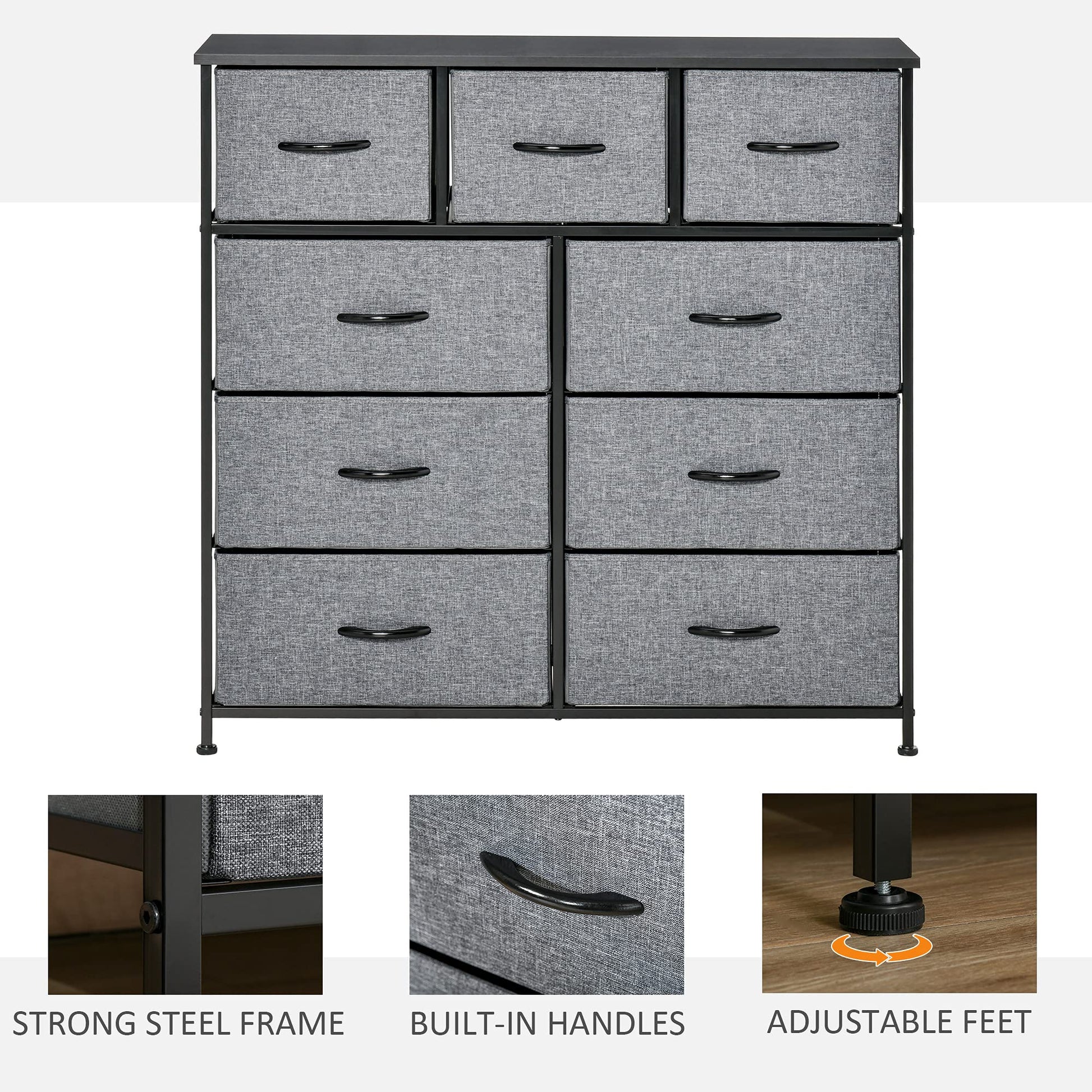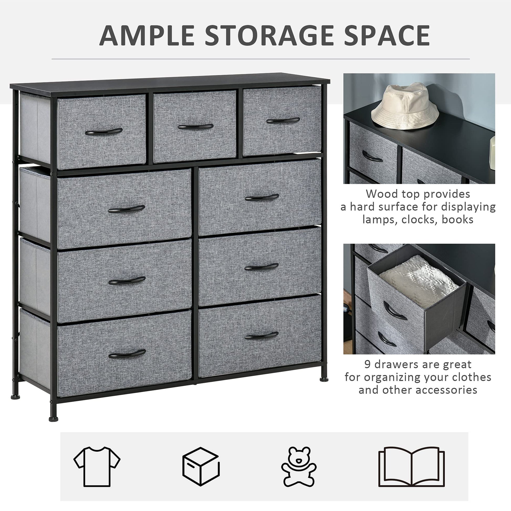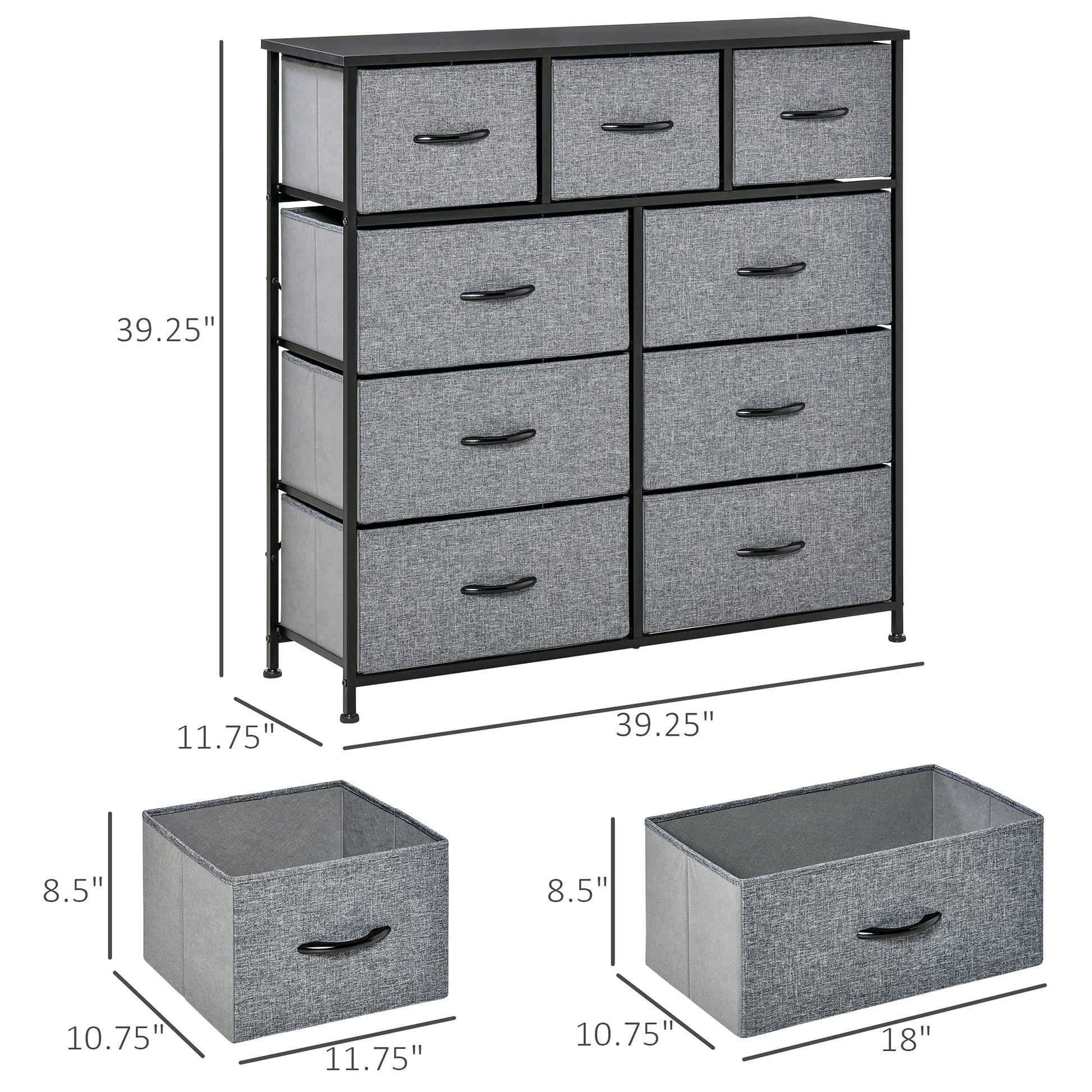 9 Drawers Storage Chest Dresser Organizer Unit w/Steel Frame, Wood Top, Easy Pull