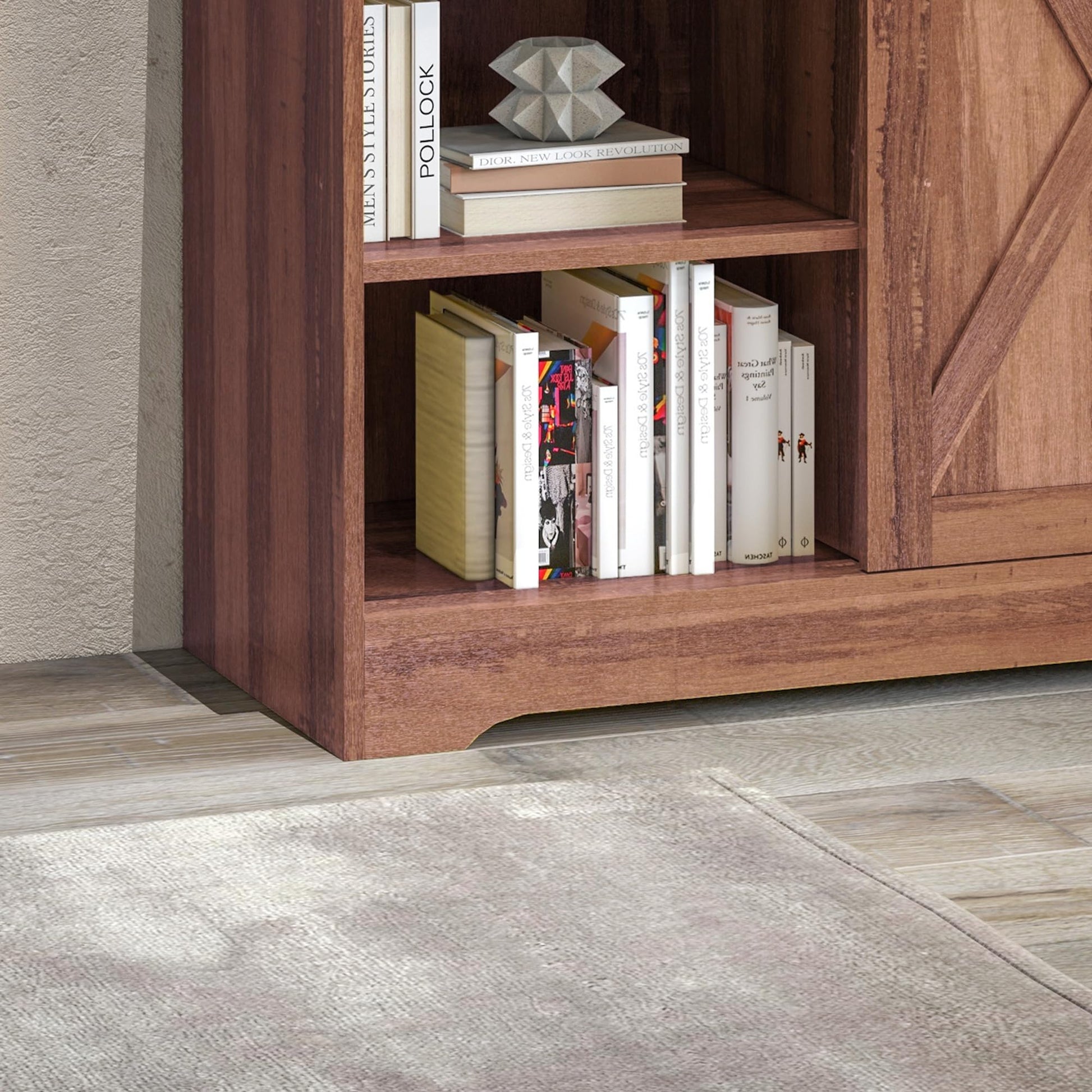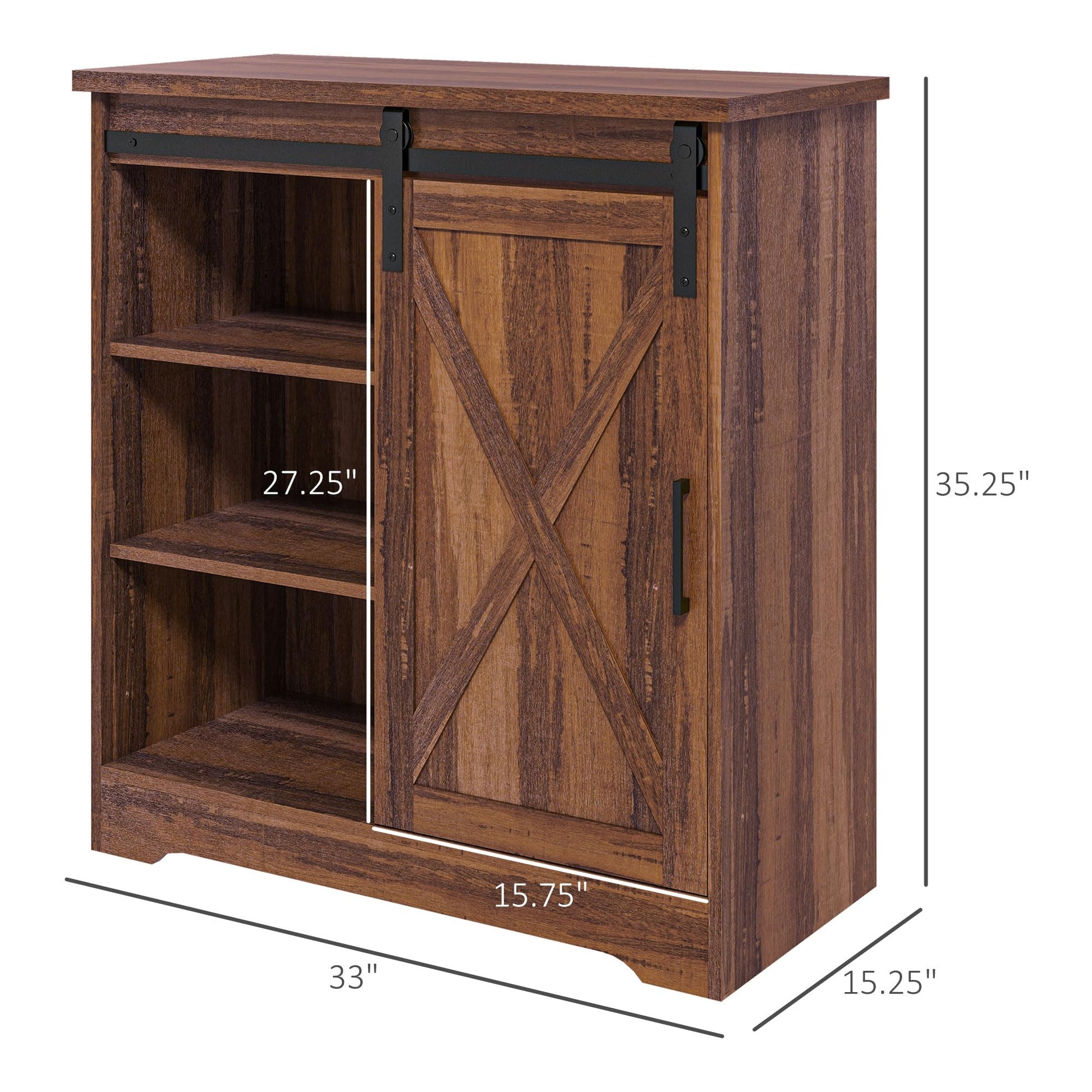Farmhouse Coffee Bar Cabinet, 33" Buffet Sideboard with Sliding Barn Door and Adjustable Shelf, Kitchen Buffet Cabinet, Brown