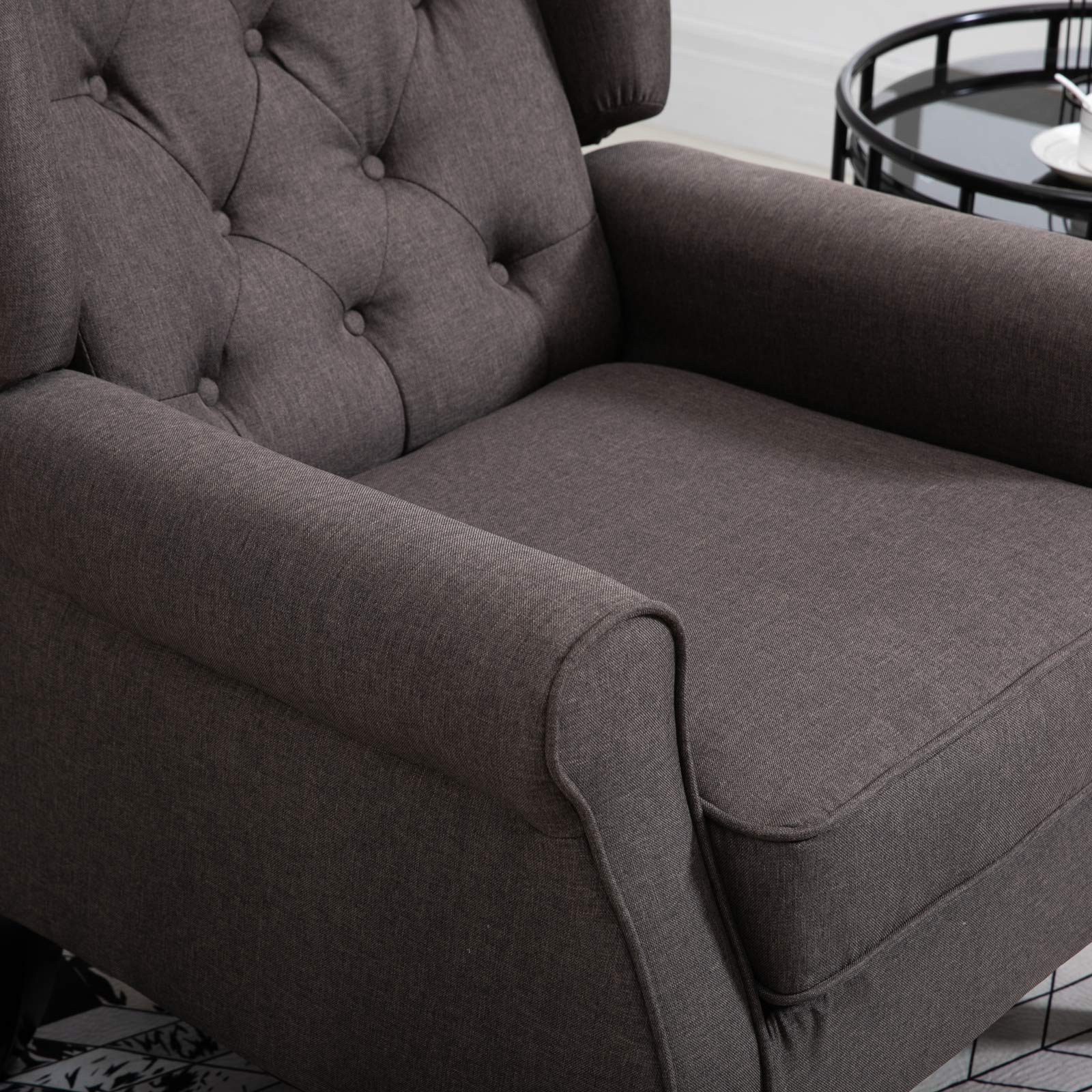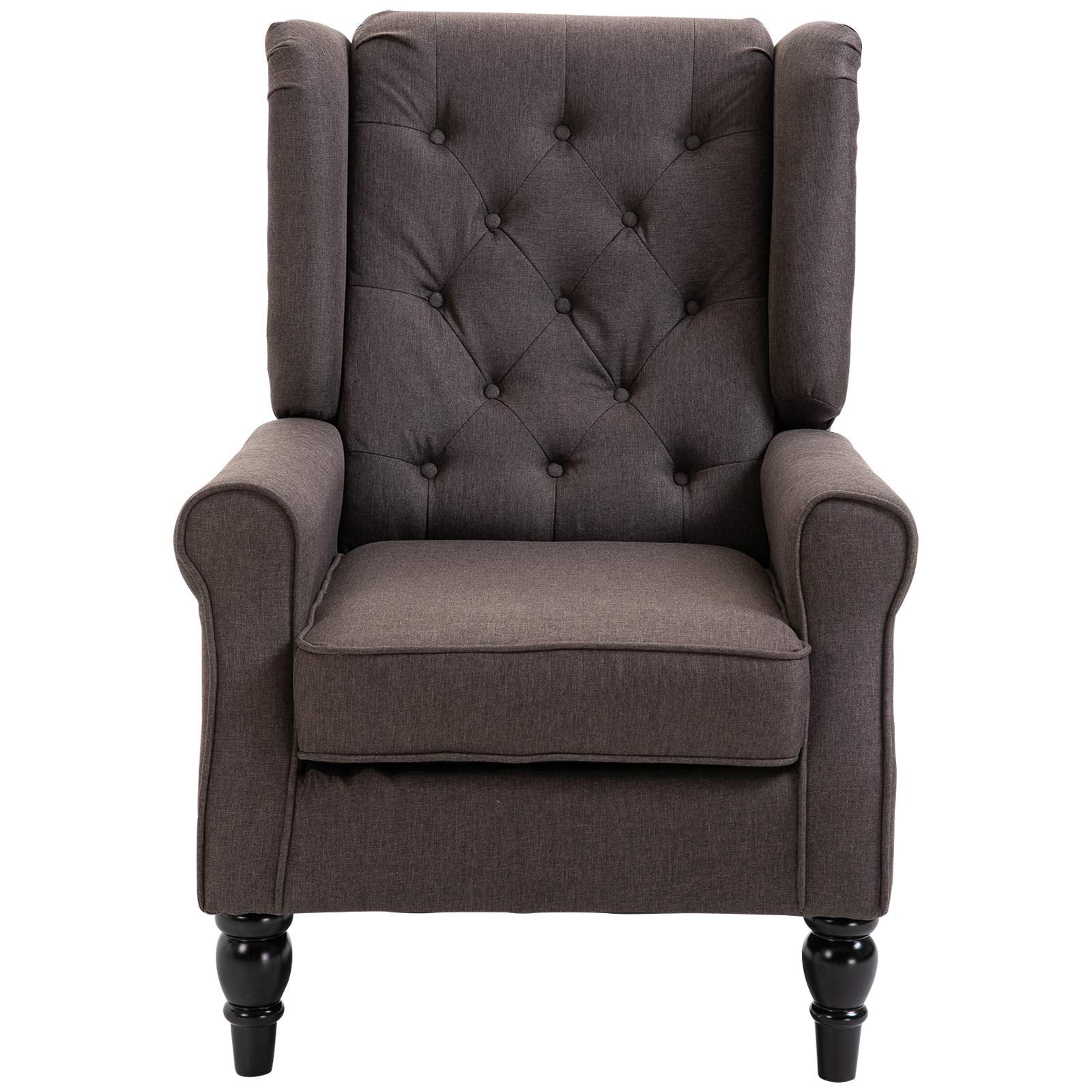 Modern Accent Chair, High Wingback Chair, Button-Tufted Upholstered Fabric Armchair with Retro Wood Legs for Living Room, Bedroom, Dark Brown