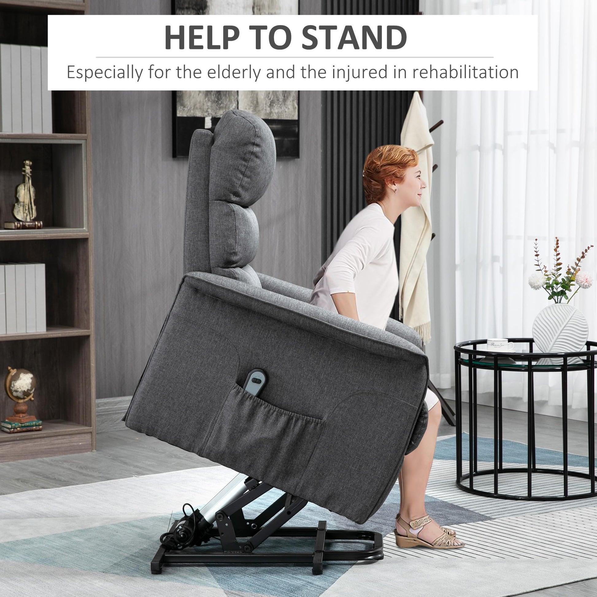 HOMCOM Power Lift Recliner Chair for Elderly, Easy Assembly, Fabric Lift Chair for Adults, Recliner Sofa with Remote Control, Side Pockets for Living Room, Gray