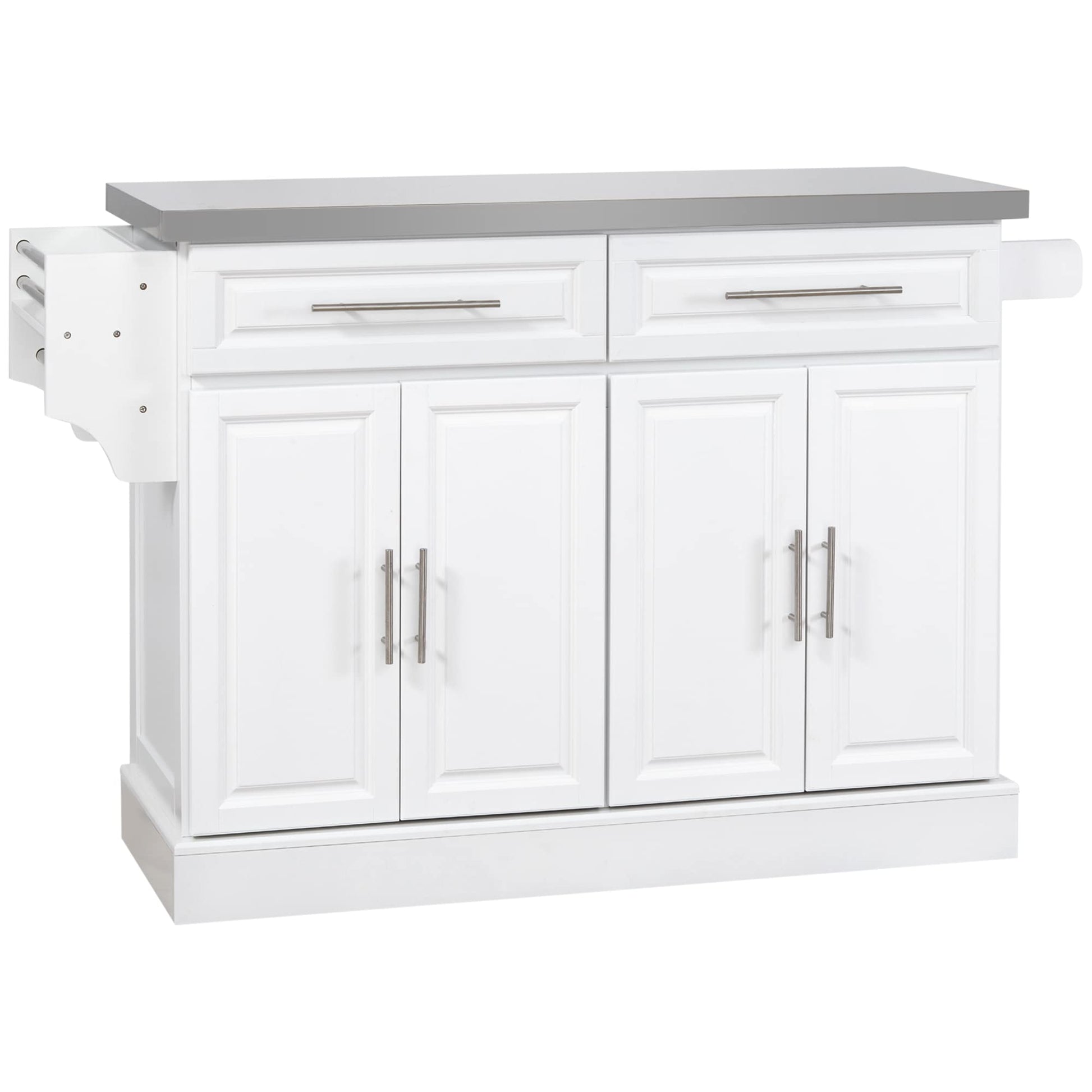 Rolling Kitchen Island with Storage, Portable Kitchen Cart with Stainless Steel Top