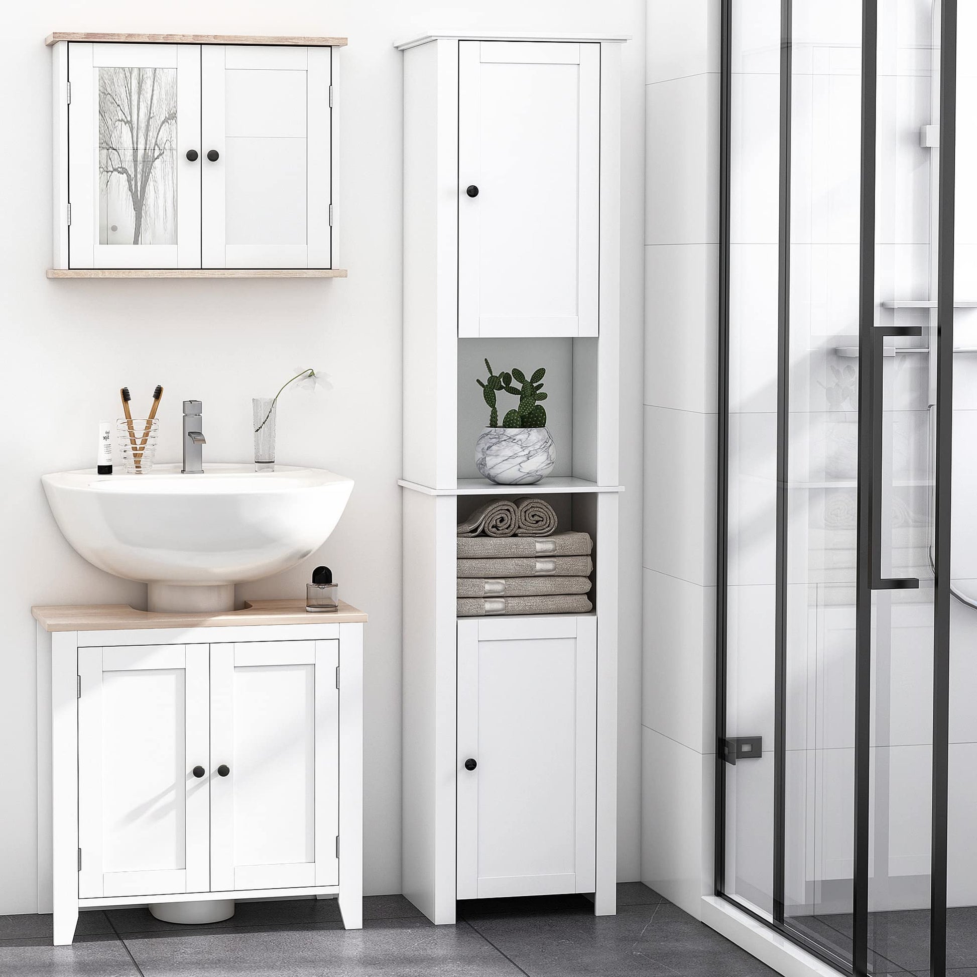 - Quality Material: Constructed of premium-quality engineered wood board with metal hinges, making this bathroom cabinet durable and easy to maintain.