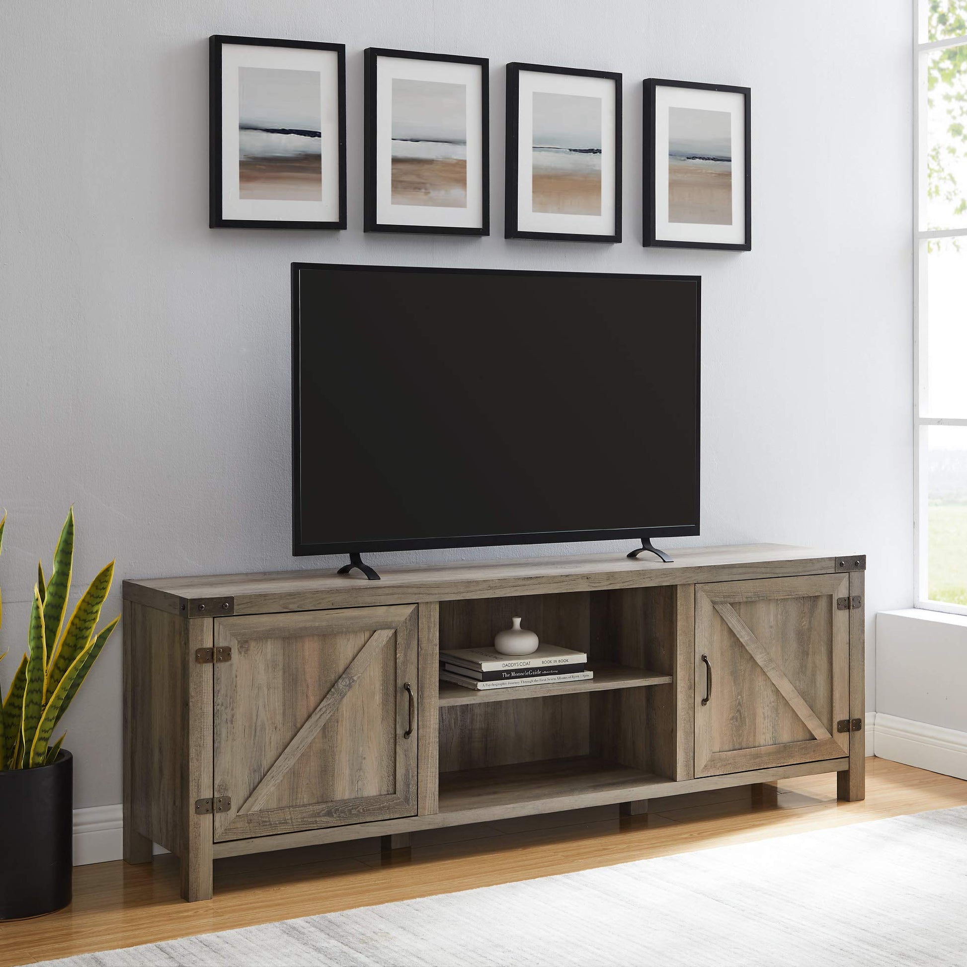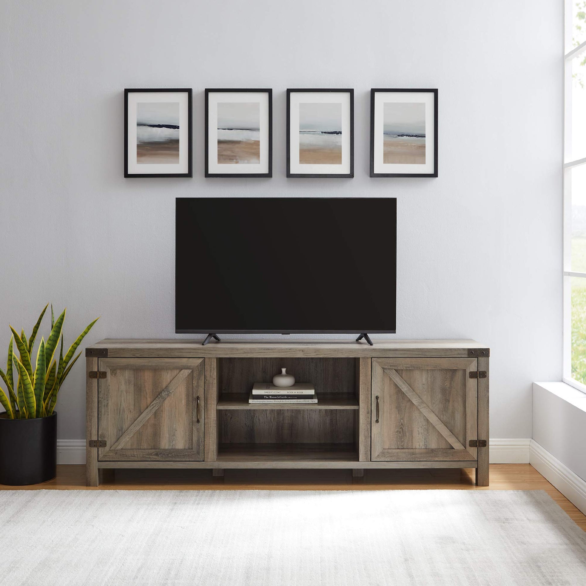 Tucker 70 Inch Barn Door TV Console in Grey Wash