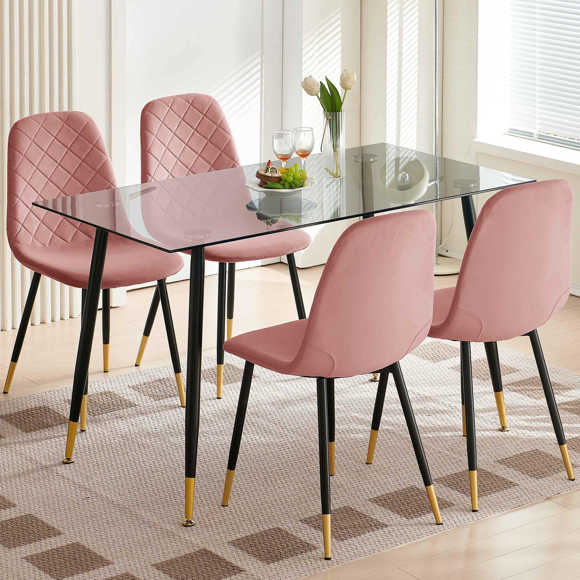 - Modern 51 Inch grey glass rectangle dining table with 4 soft velvet dining chairs,good for your interior no matter in big house or small appartment dining area .The mid century dining table set can accommodate 4-6 person have meal at same time. The classic dining chairs crafted of elegant velvet surface seat with power-coted black metal frame ,sturdy and long time use.