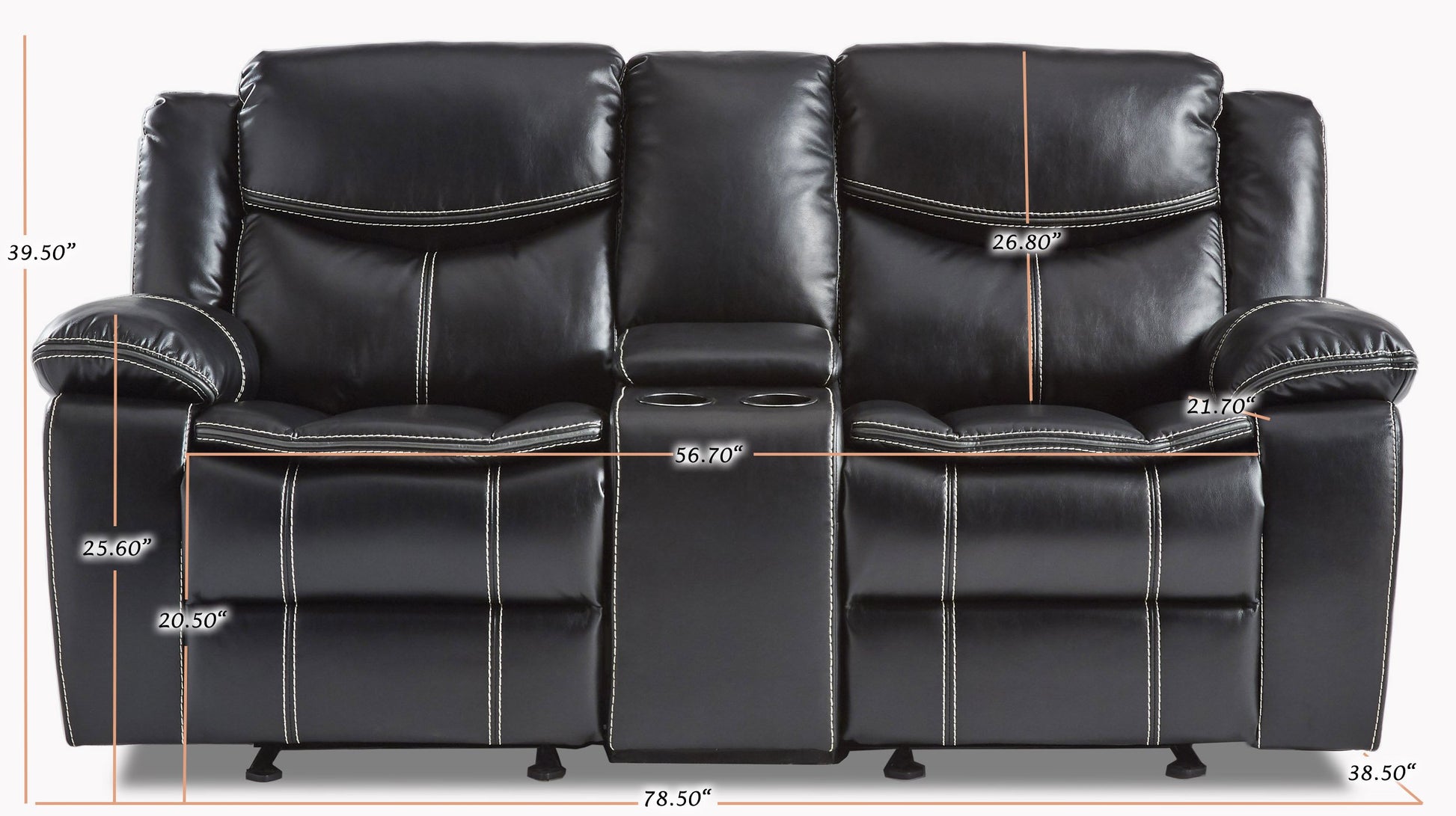 - Traditional look loveseat with manual reclining system (tool-free assembly)