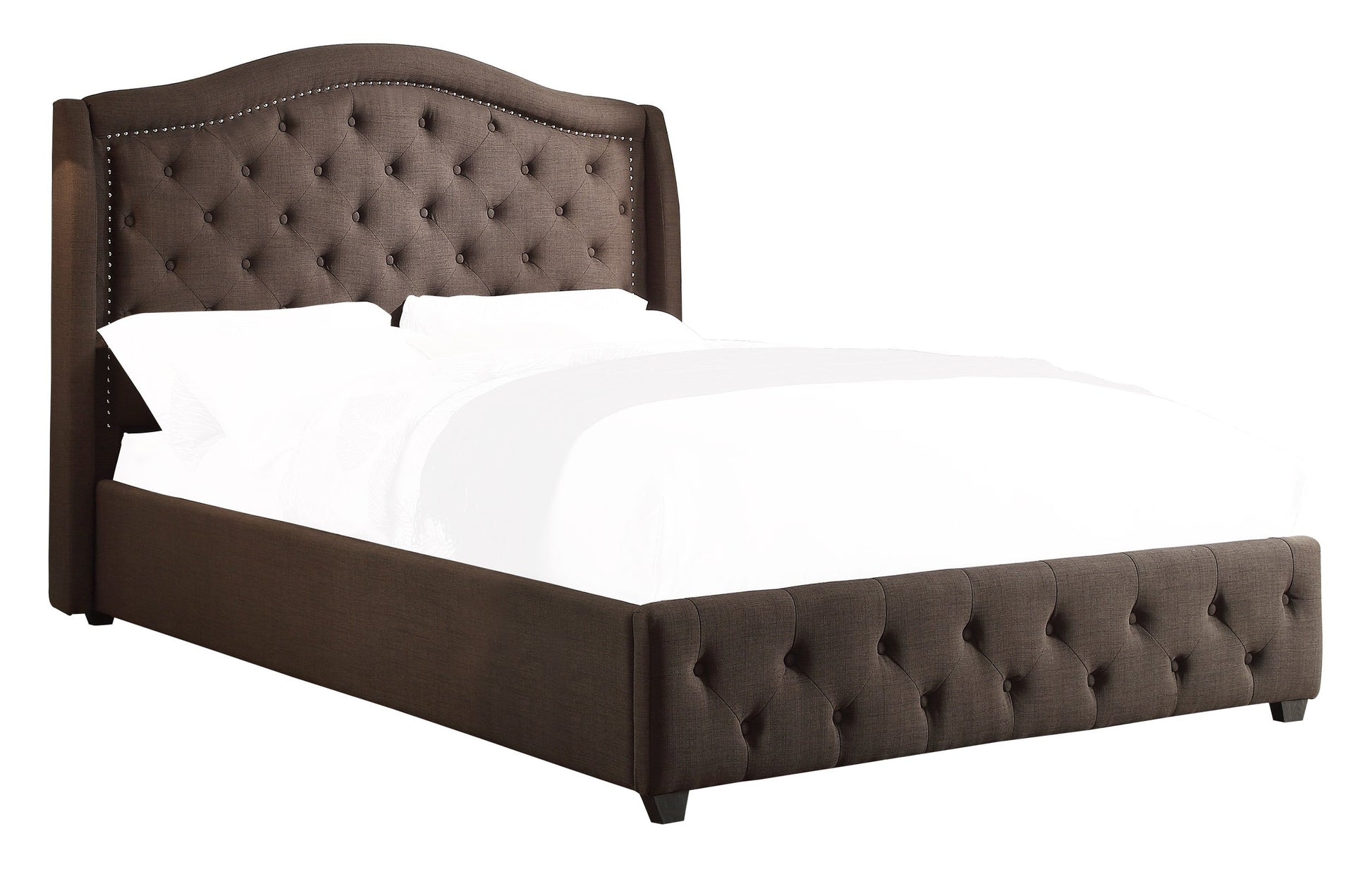 Button Tufted Linen Like Upholstered Bed, Full, Grey