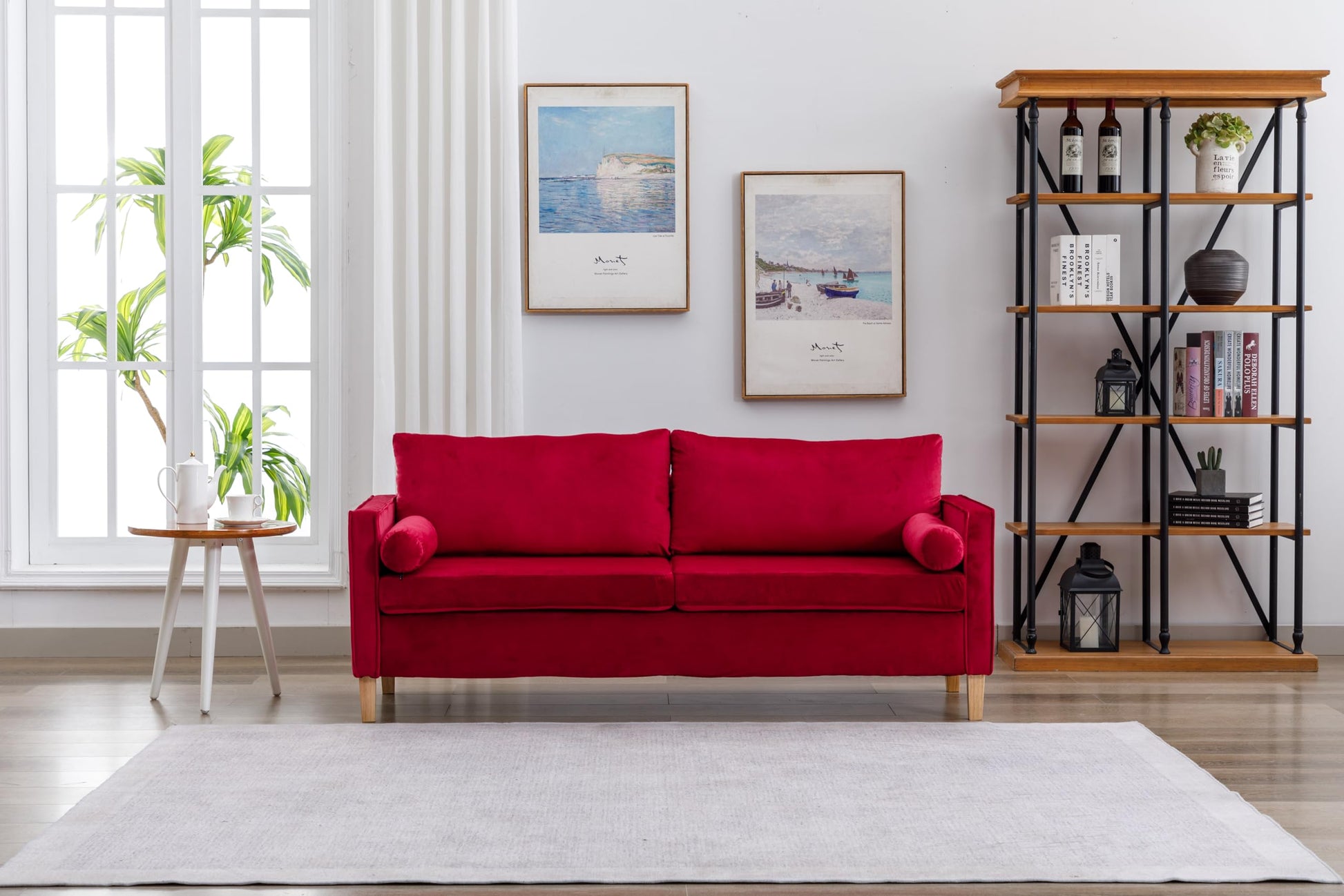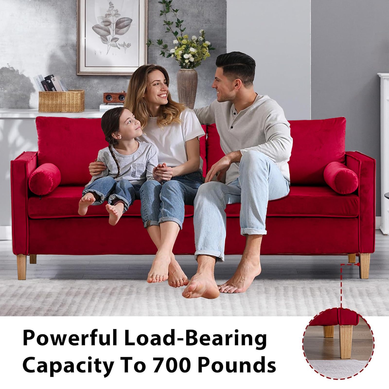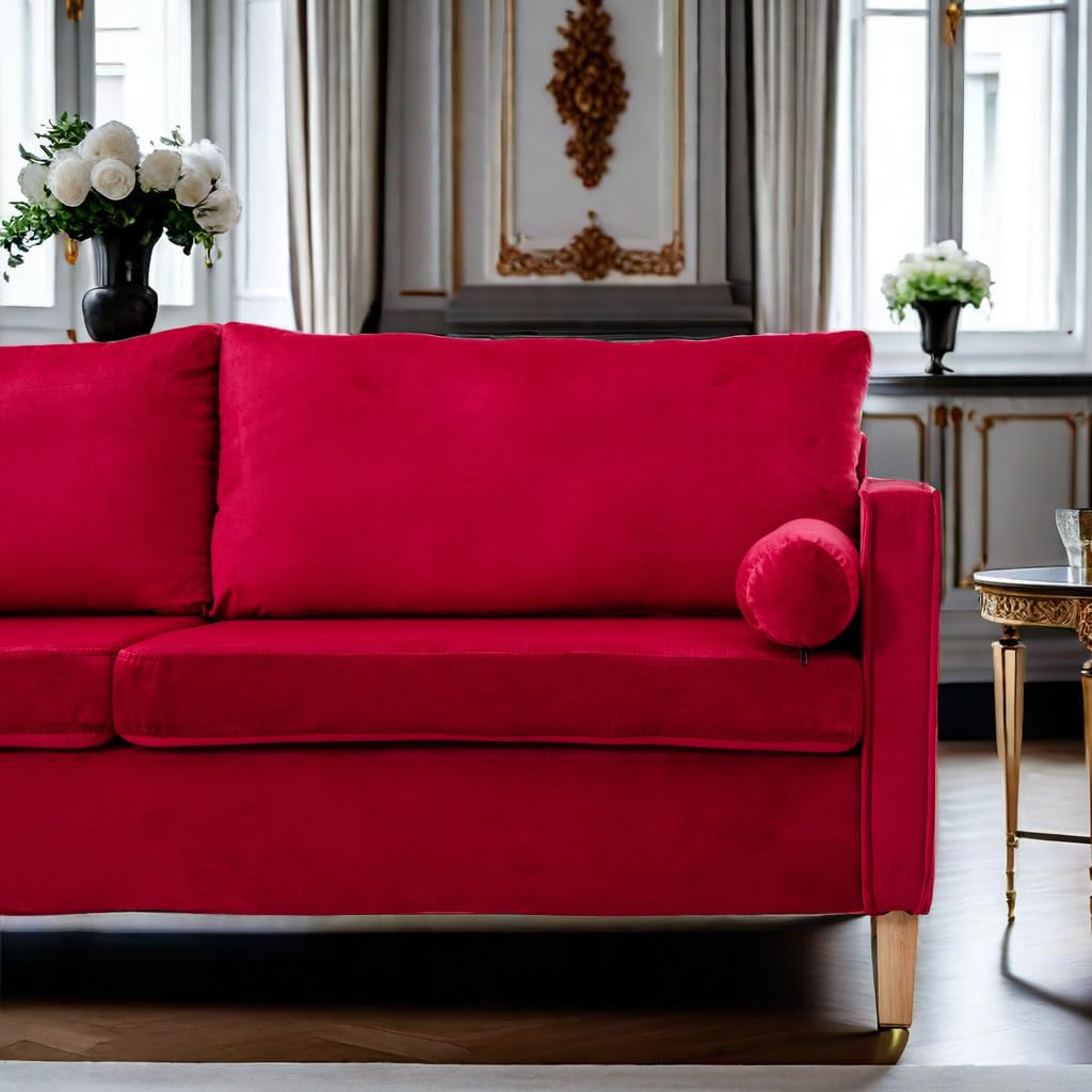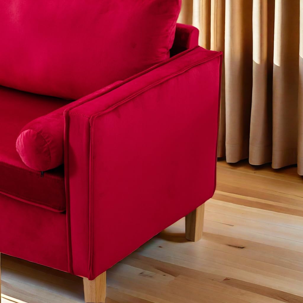 - Our red loveseat sofa features a solid wooden frame and sturdy wooden legs, ensuring an elegant appearance exceptional stability and durability. All components are made of high-quality materials, carefully selected and tested to ensure the sofa can withstand the rigors of everyday use.