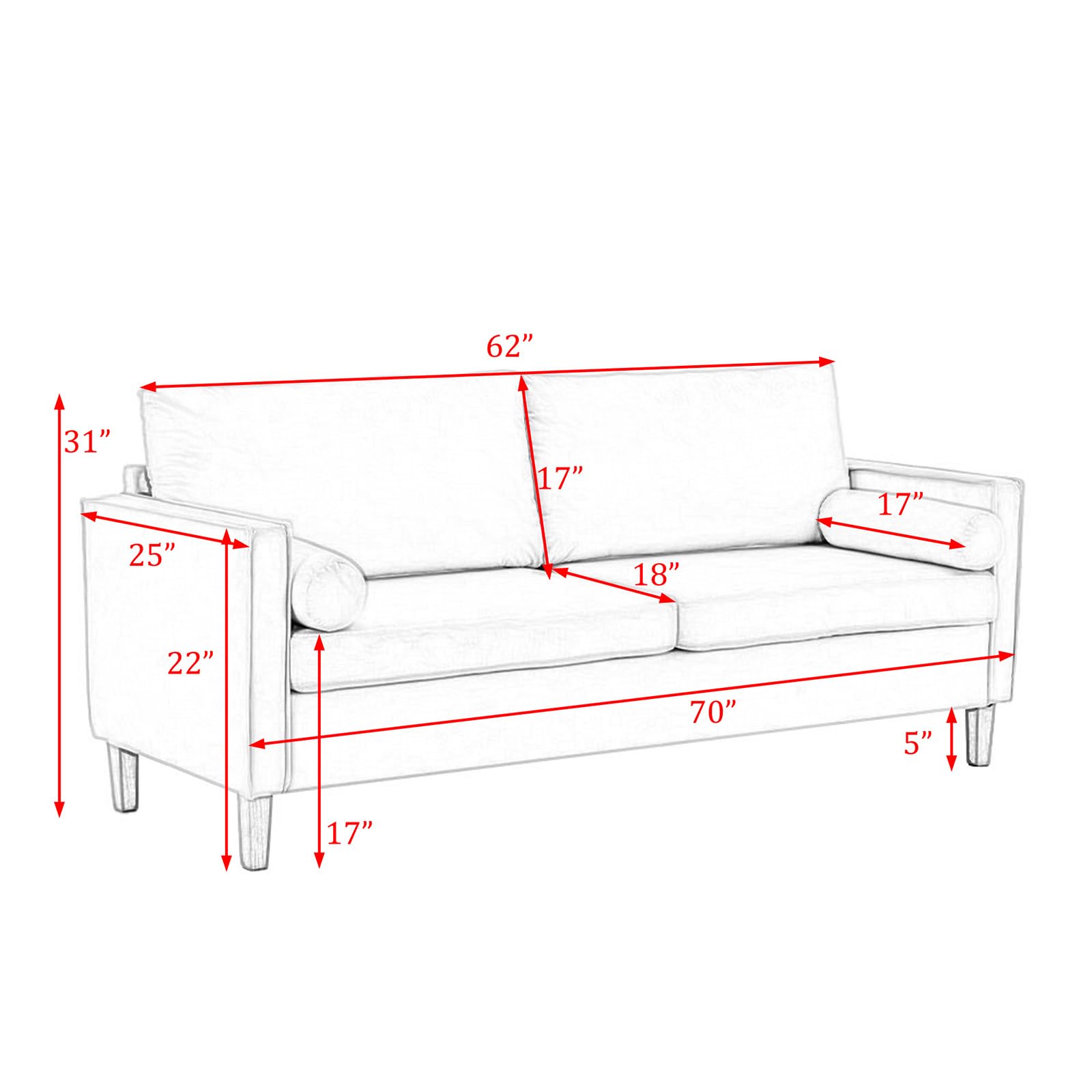 - This two-seater sofa, with its 70-inch length and 17-inch moderate back height, offers modern, minimalist design that provides good lumbar support. 70inch couch sofa compact size allows it to fit perfectly into various spaces, whether modern sofa is the living room, study, or bedroom, becoming a highlight of your home decor.