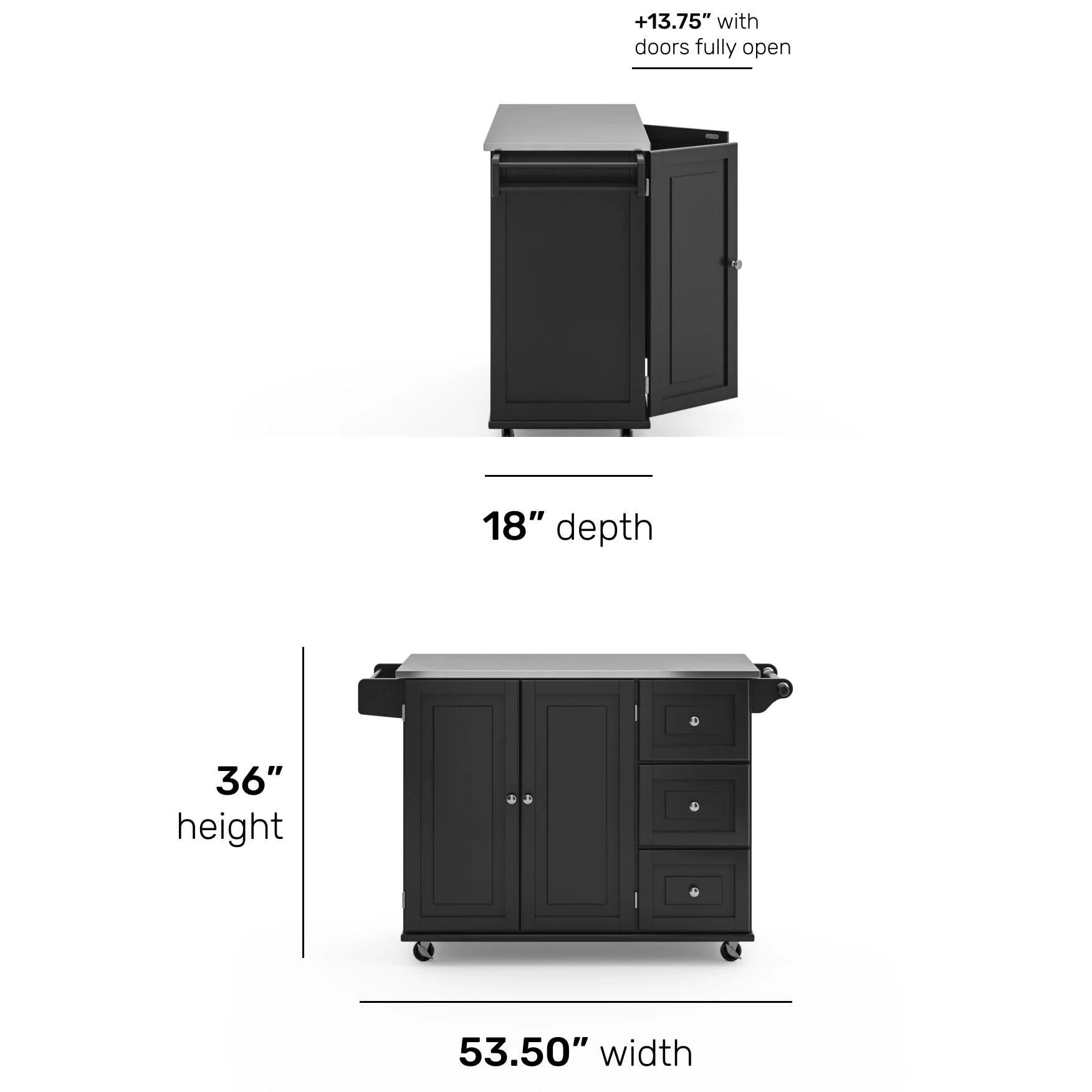 Product Dimensions | 18"D x 53.5"W x 36"H |