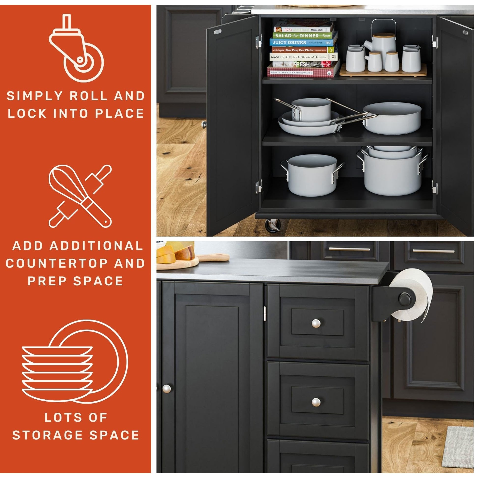 Kitchen Cart with Stainless Steel Metal Top, Rolling Mobile Kitchen Island
