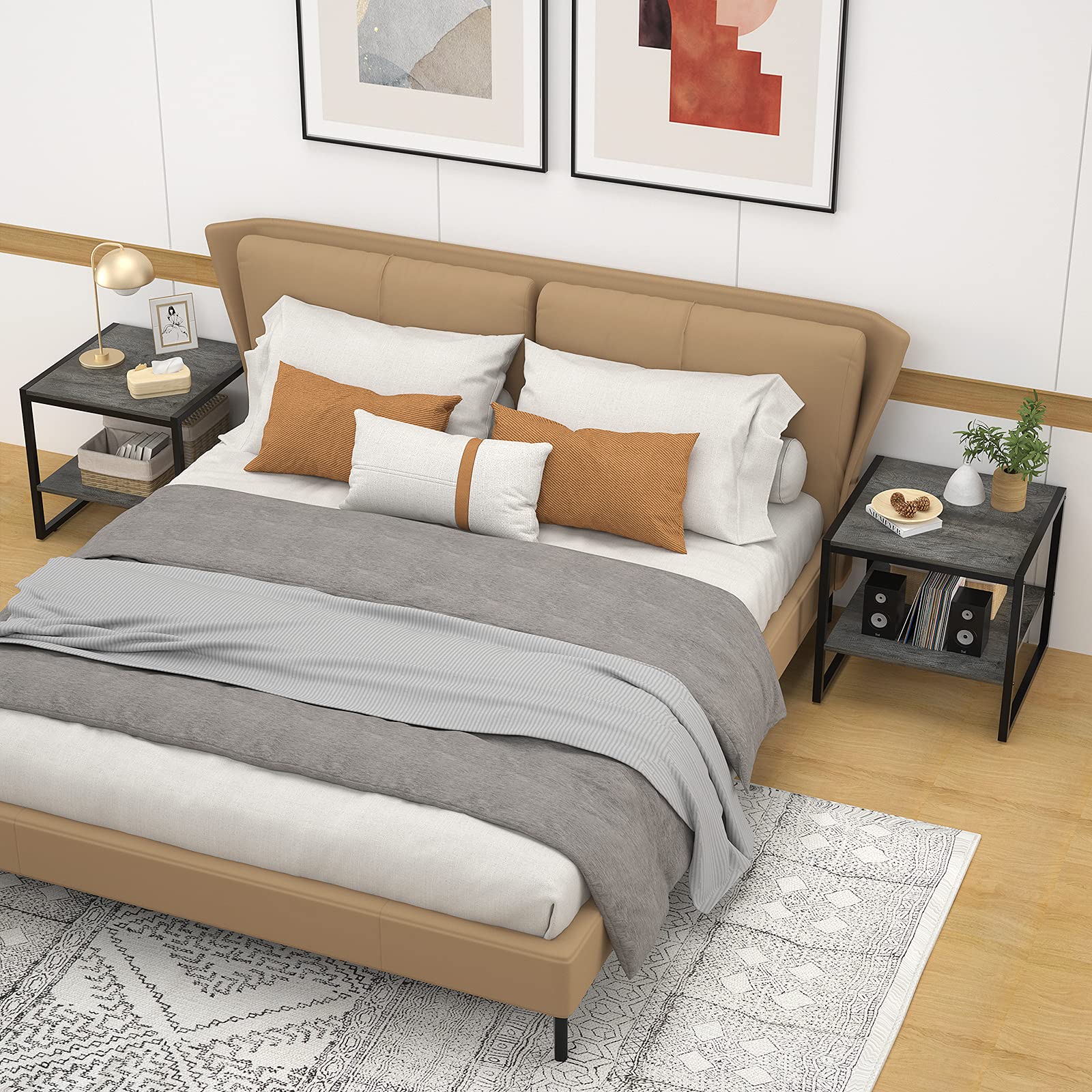 End Table, 20 Inch Square Side Table Modern Night Stand with 2-Tier Storage Shelf
