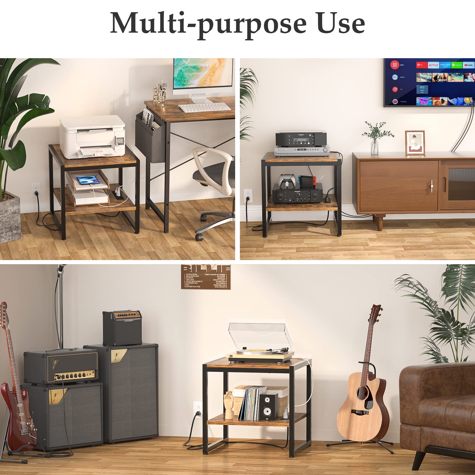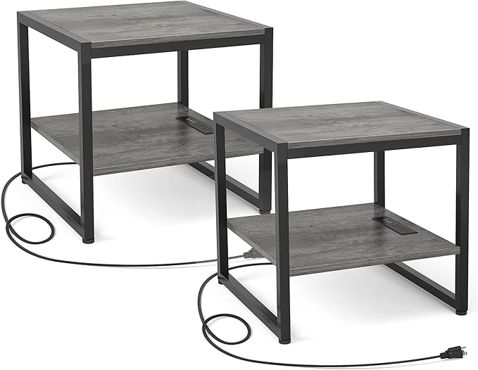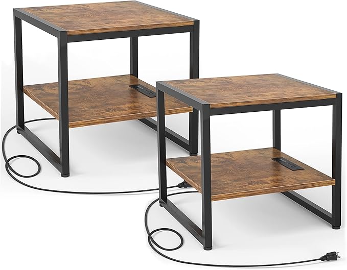 - Thoughtful and Friendly Design - The charging station is on the bottom shelf so that you can put your coffee on the tabletop safely. The industrial metal wood table is a perfect contemporary to any living room or bedroom as a mini-fridge stand, nightstand, coffee table, sofa side table, or printer stand.