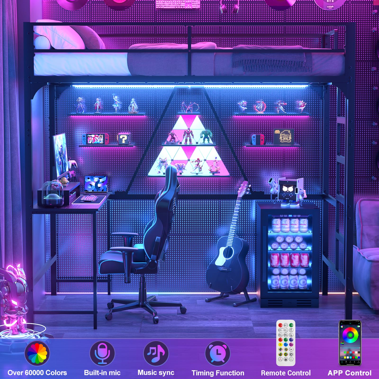 - Convenient Charging Station with LED Strip: With a 6.56ft long power supply cord, 3 power outlets, and 2 USB ports, charging your devices becomes hassle-free and reduces cable clutter. Homieasy twin loft bed is equipped with smart RGB LED lights, you can customize the brightness, color, mode, and timer settings using either the APP or the remote.