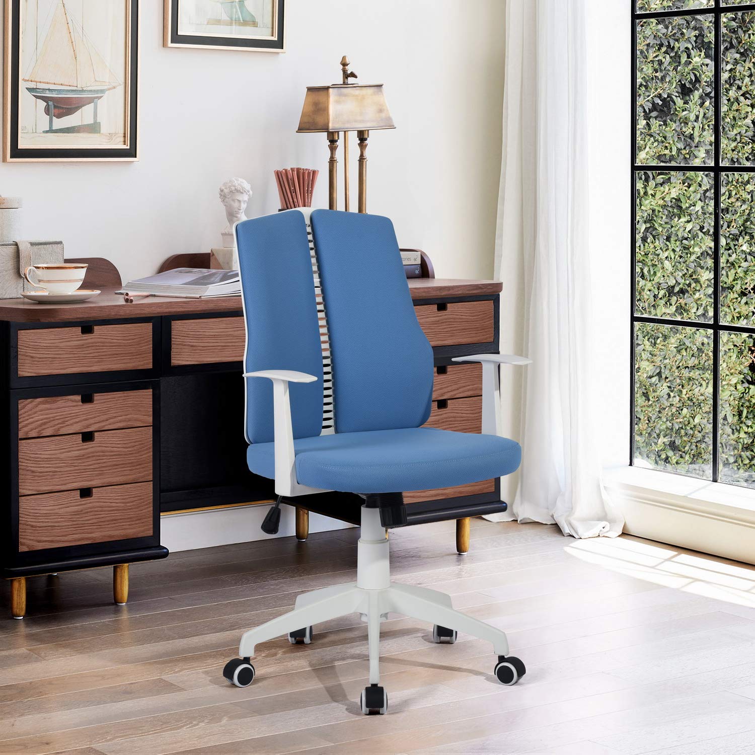 - This computer desk chair uses high-density sponge cushion, more flexible, office chair with a middle back design, rectangular ornament not only as a decoration, it can provide good lumbar support makes you feel comfortable