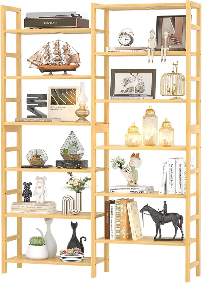 Bamboo Triple Wide 6-Tier Bookshelf and Bookcase, 6ft Tall Bookshelves