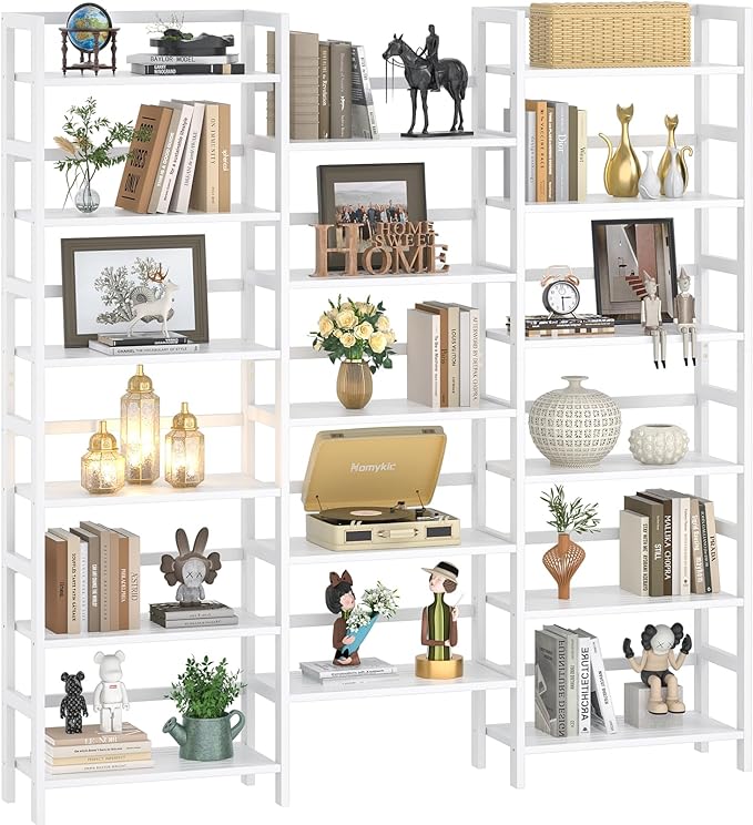 - Ultra-Sturdy Structure: Made of 100% thickened bamboo wood with exquisite craftsmanship and a sturdy structure for long-term use. The triple wide bookshelf is equipped with side and rear fences to prevent books or items from falling. Besides, there is a crossbar under each shelf to enhance the load-bearing capacity. For safety, you can secure the bamboo bookshelf to the wall using the included anti-tip device to prevent it from accidentally tipping over.