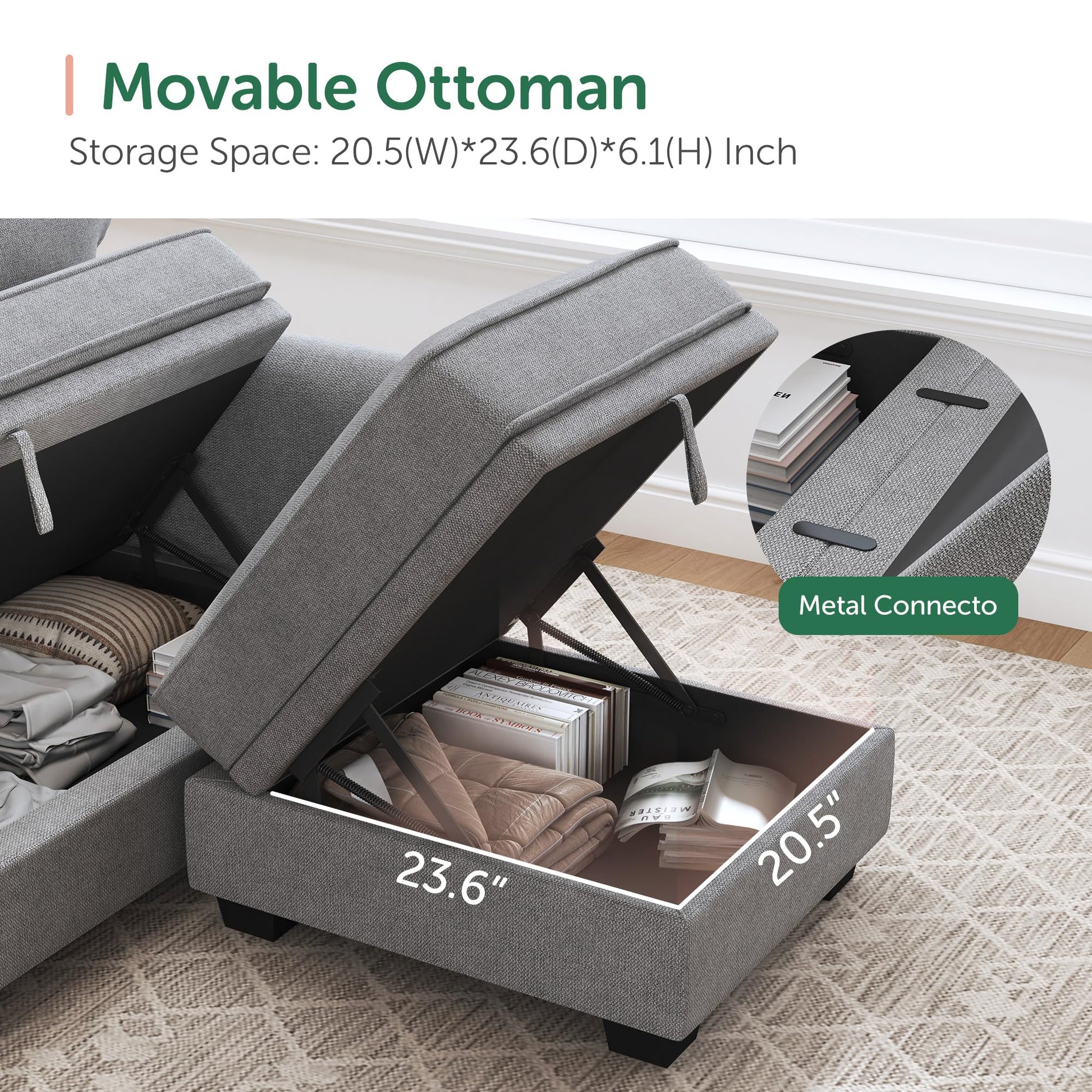 Convertible Sectional Sofa with Storage Seat 6 Seat Sofa with Reversible Chaise U Shaped