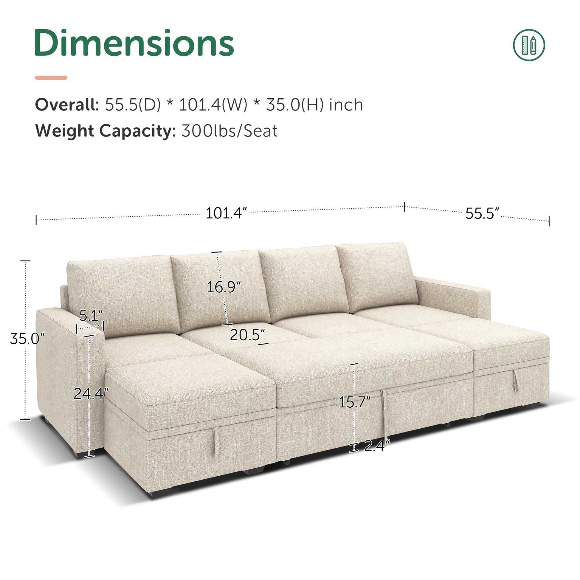 - Convenient Pull-Out Sleeper: Transform your sectional sofa into a cozy bed effortlessly with the integrated pull-out sleeper sofa, providing a comfortable sleeping surface for guests or family movie night
