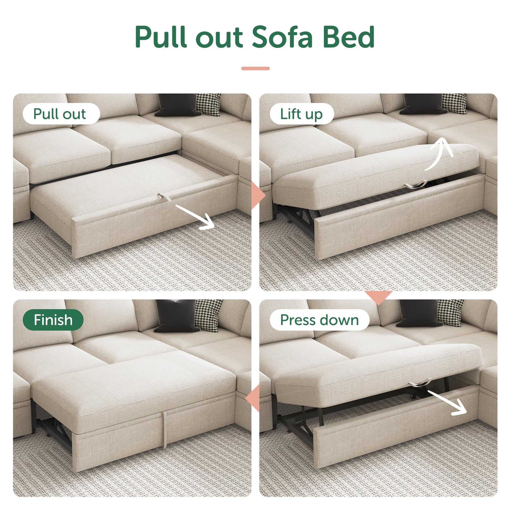 - Tool-Free Assembly: Experience hassle-free setup with no tools required, making assembly quick and straightforward, so you can enjoy this sectional sleeper sofa bed in no time