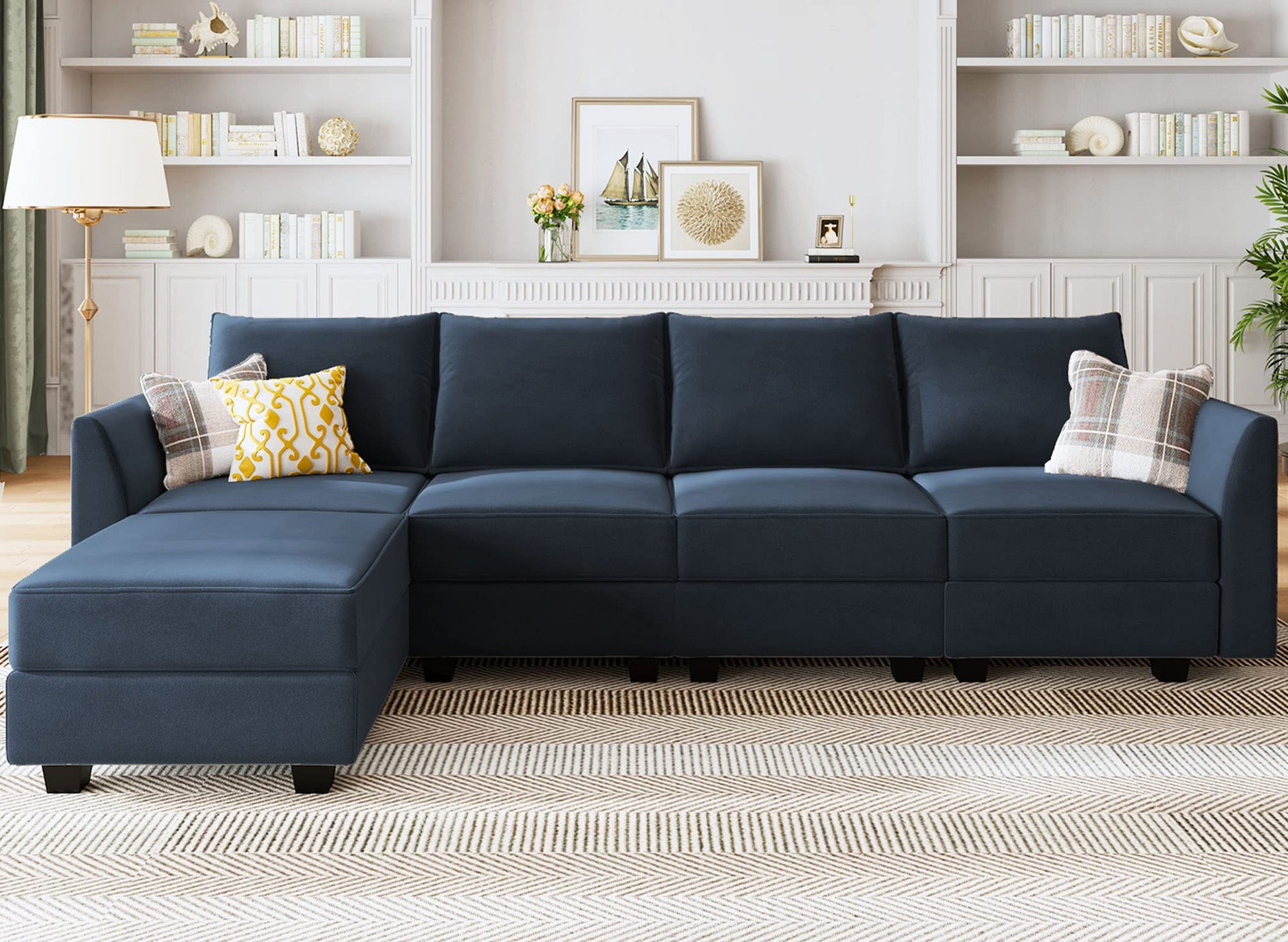 - Flexible Modular Sofa: Each seat of sectional couch is movable and re-matchable which can be arranged into not only L shaped sofa but also 4 seater couch with ottoman, You can reconfigure it anyway you want to fit your needs and space