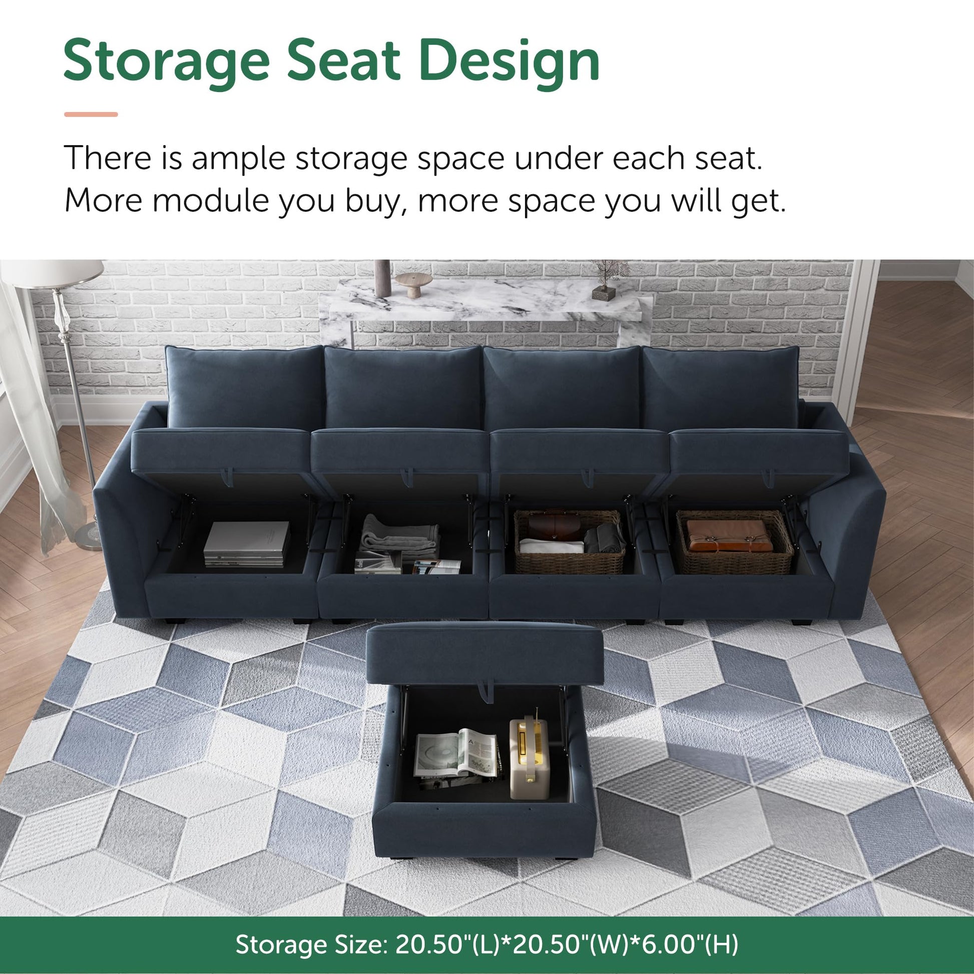 Modular Sectional Sofa Velvet L Shaped Couch with Storage Ottoman Convertible