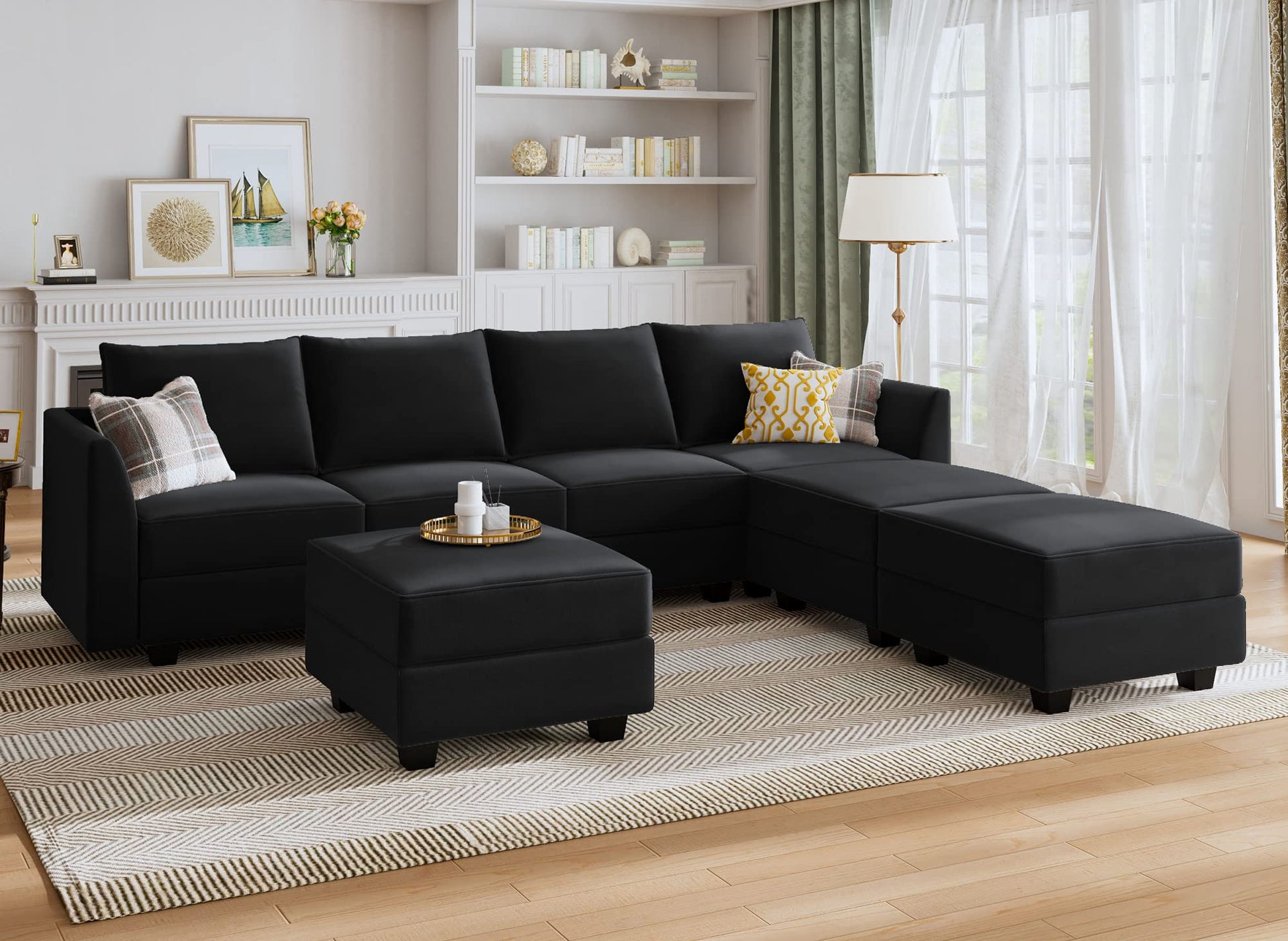 - Comfortable and Durable: Sturdy solid wood frame, filled with high-quality sponge and comfy velvet fabric, making the sectional sofa with ottoman keep comfy and soft but firm so won't lose shape easily for a long time