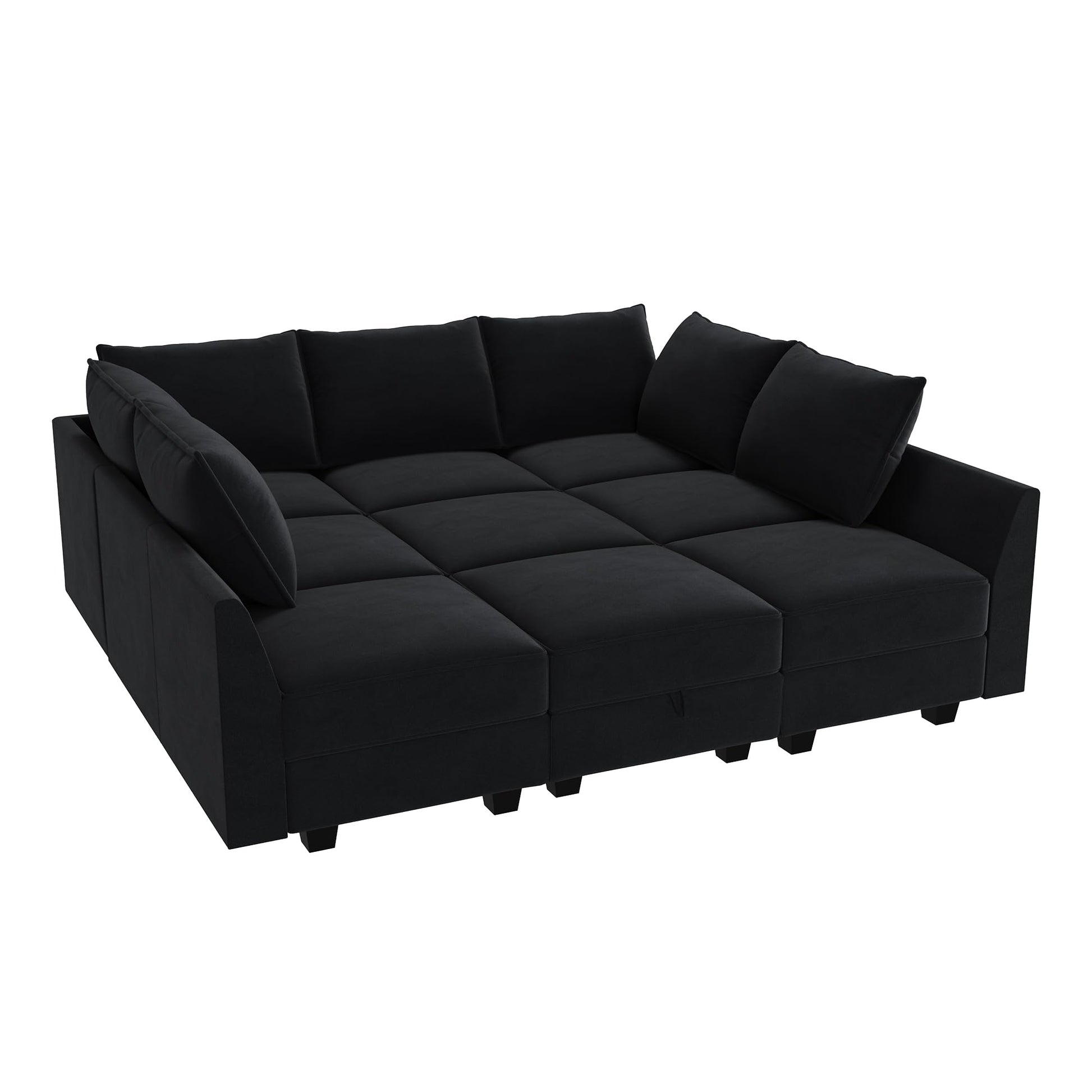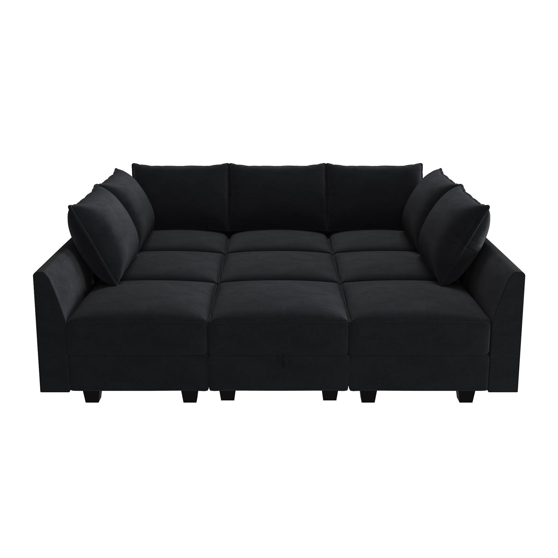 - Easy to transport and assemble: The sectional sleeper sofa consists of 10 boxes that can be passed through narrow doors and upstairs. You can easily install the sofa by following the instructions. Overall Size (D x W x H): 81.5 x 87 x 33.9 inches, Storage dimensions of each seat (D x W x H): 20.50 x 20.50 x 6.00 inches, Weight Capacity: 2970 lbs