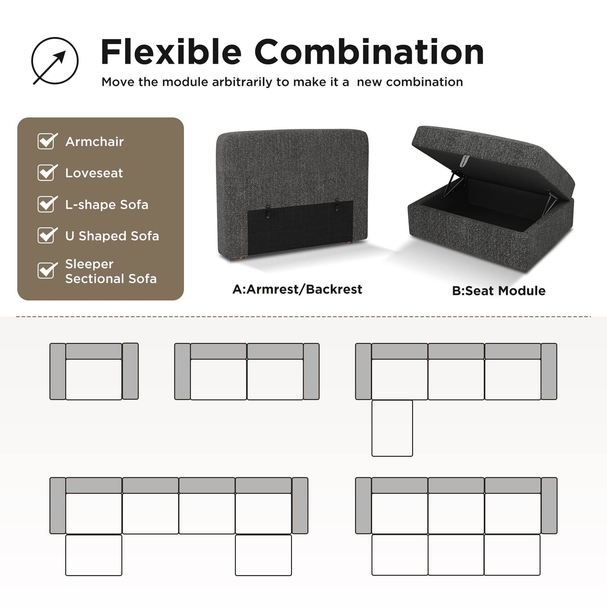 - With hidden storage space under each seat, the modular couch can be used to place toys, blankets or out-of-season things.