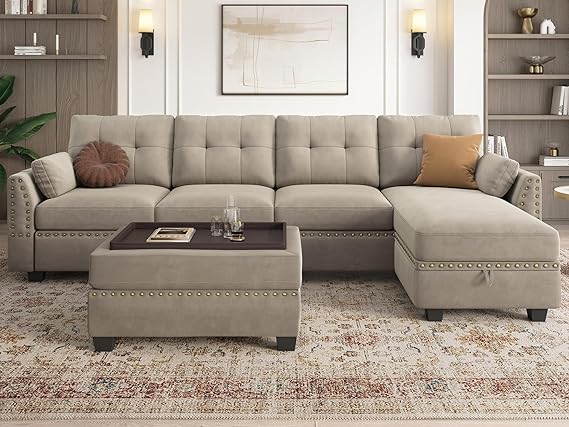 - Size and Fit: Convertible Sofa Dimensions-101.6''x50''x 33.5''(L*W*H).Couch Capacity: 660 LBS.Ottoman size:34.7"*23.6"*17.7"(L*W*H).Ottoman Capacity: 440 LBS. The sofa set consists of 4 packages and needs to be installed.