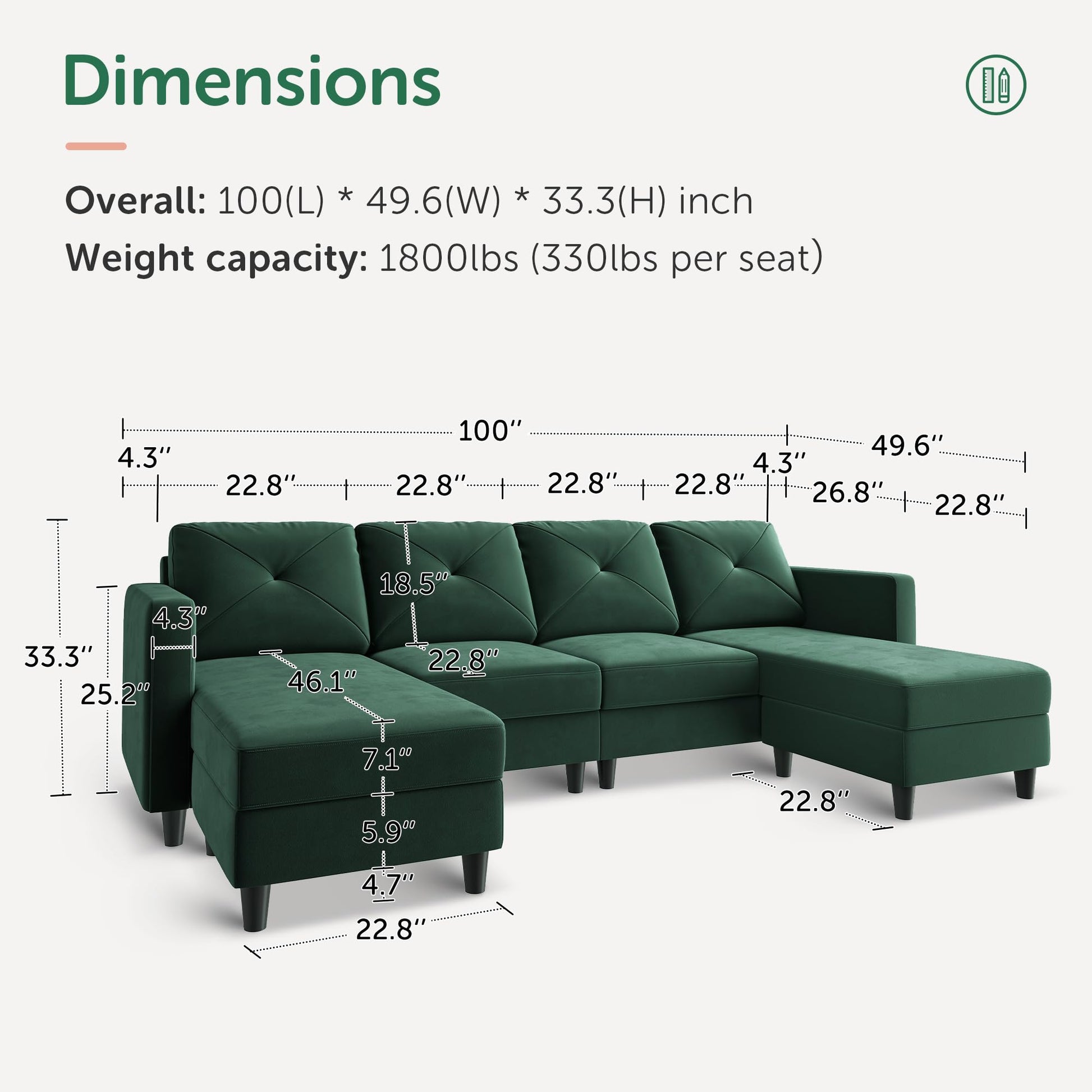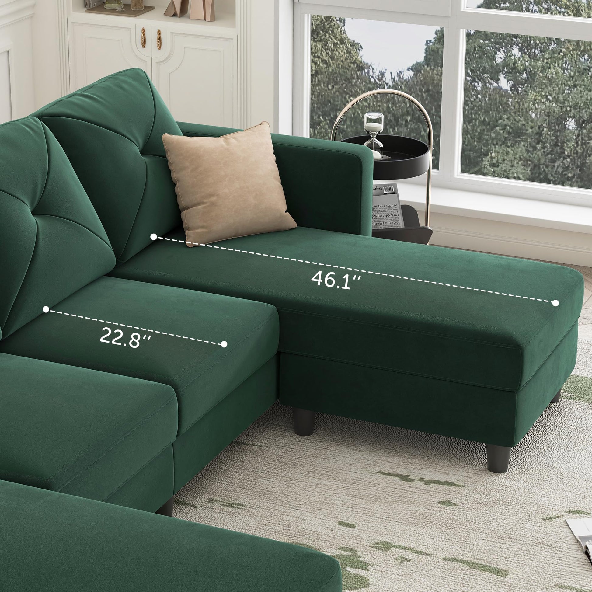 HONBAY U Shaped Sectional Sofa Convertible Couch with Double Chaises 4 Seat Sofa with Two Ottomans, Velvet Green